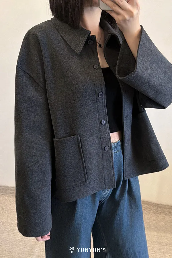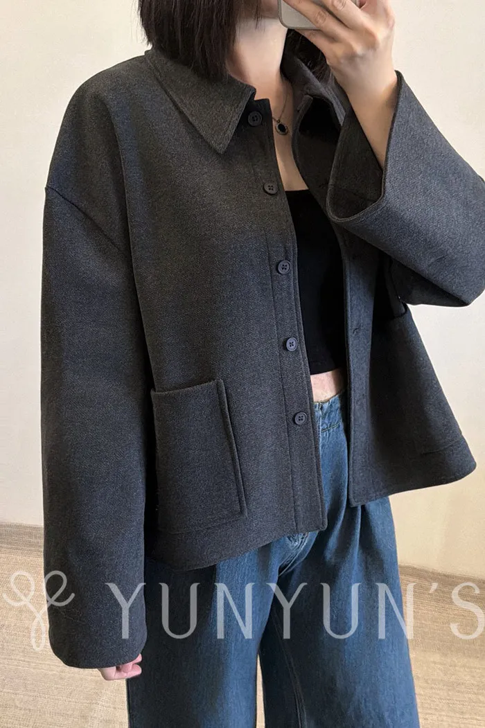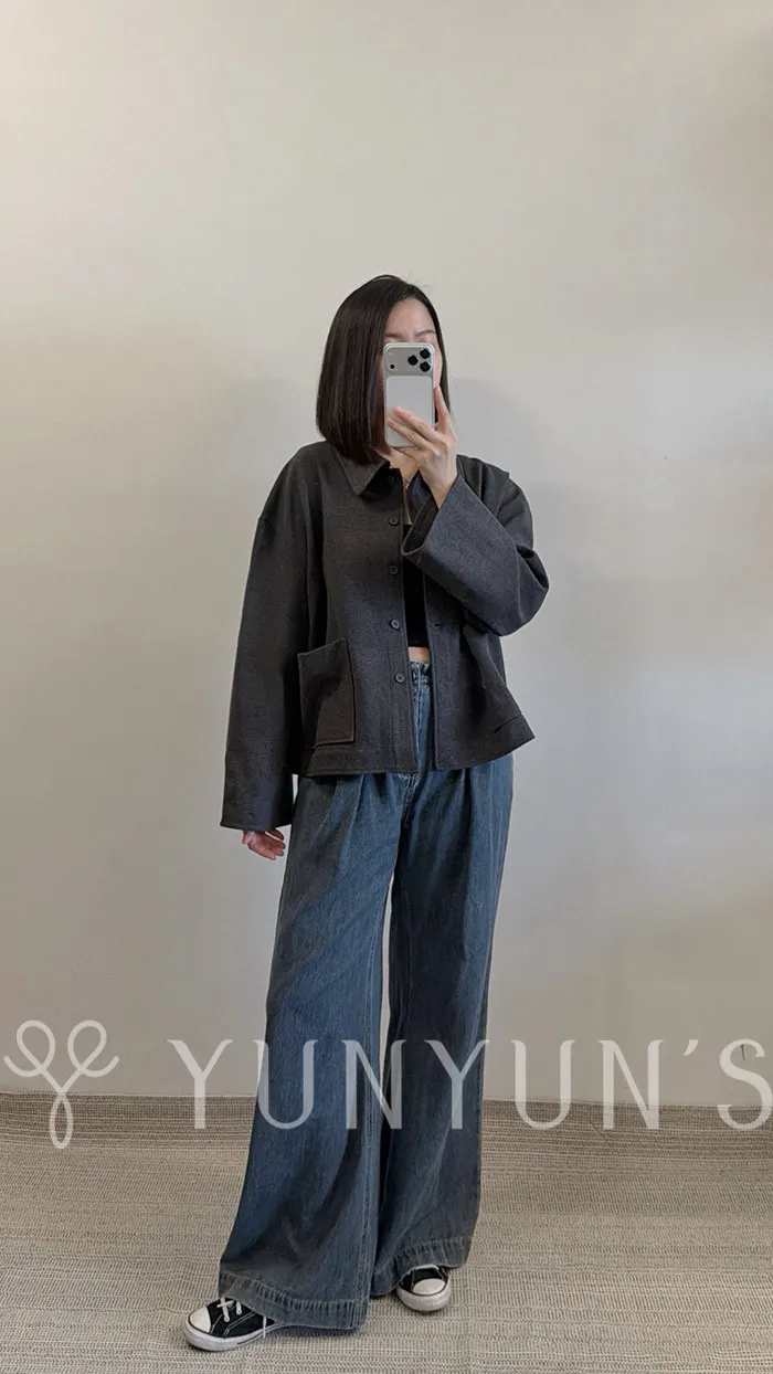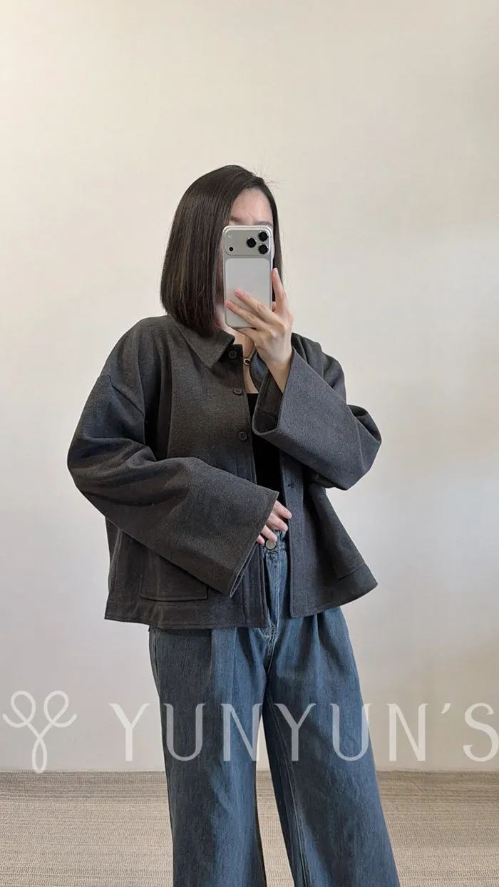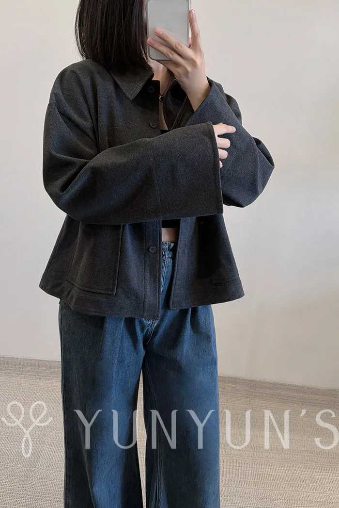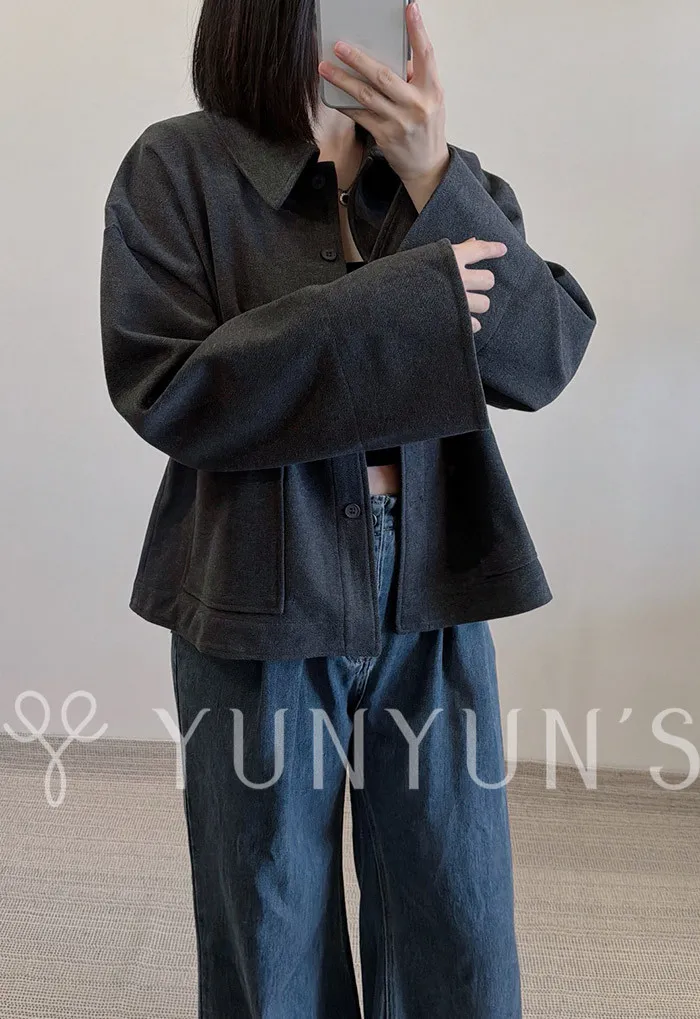 (灰)特別的挺版親膚磨毛寬袖襯衫外