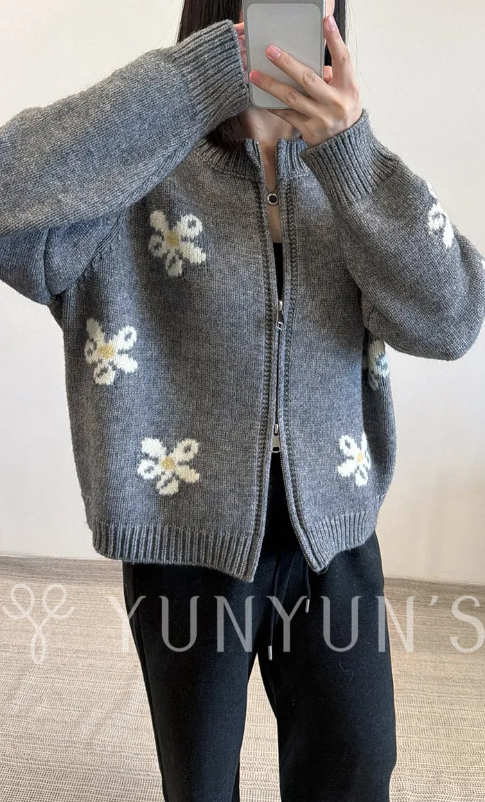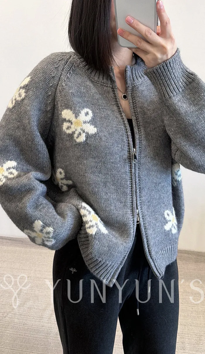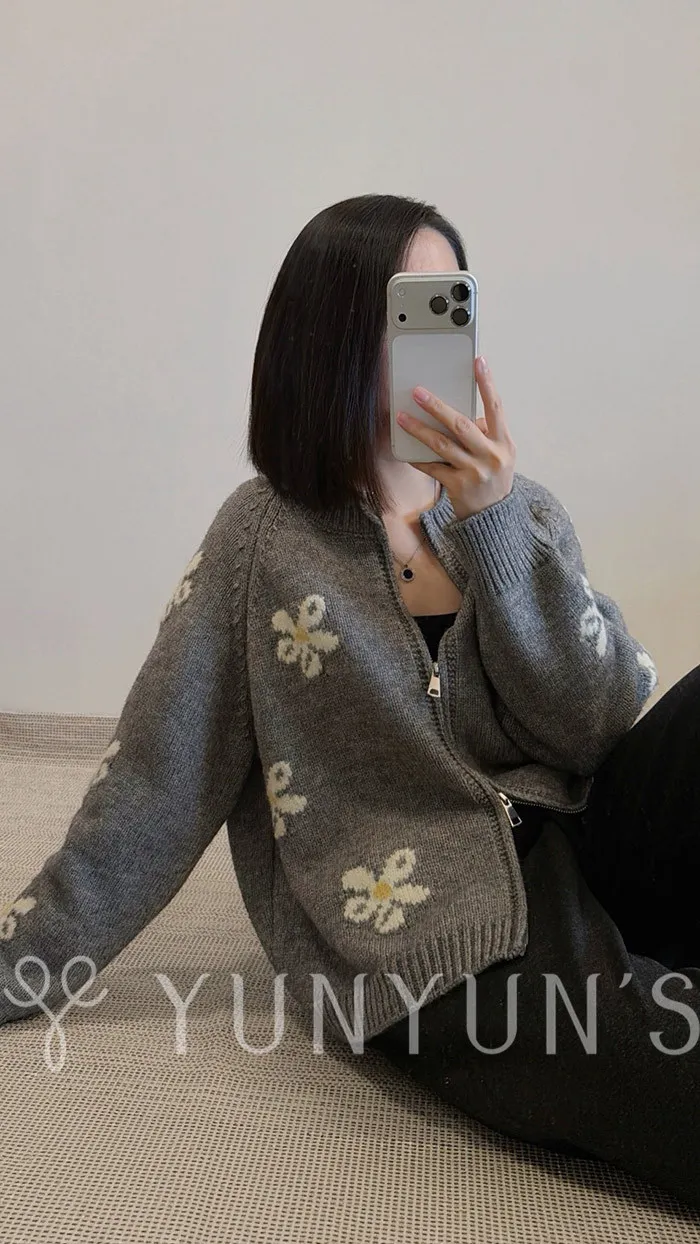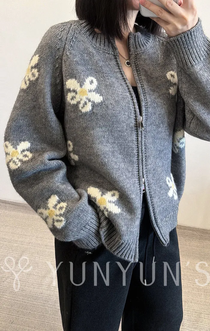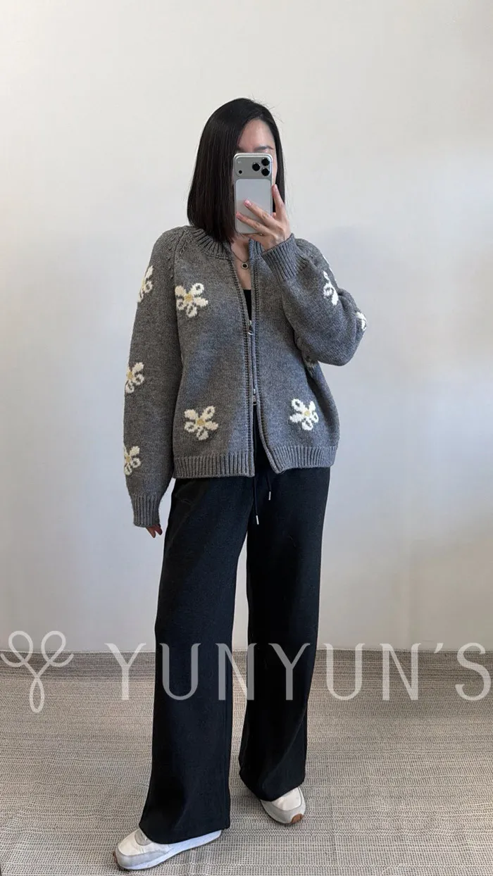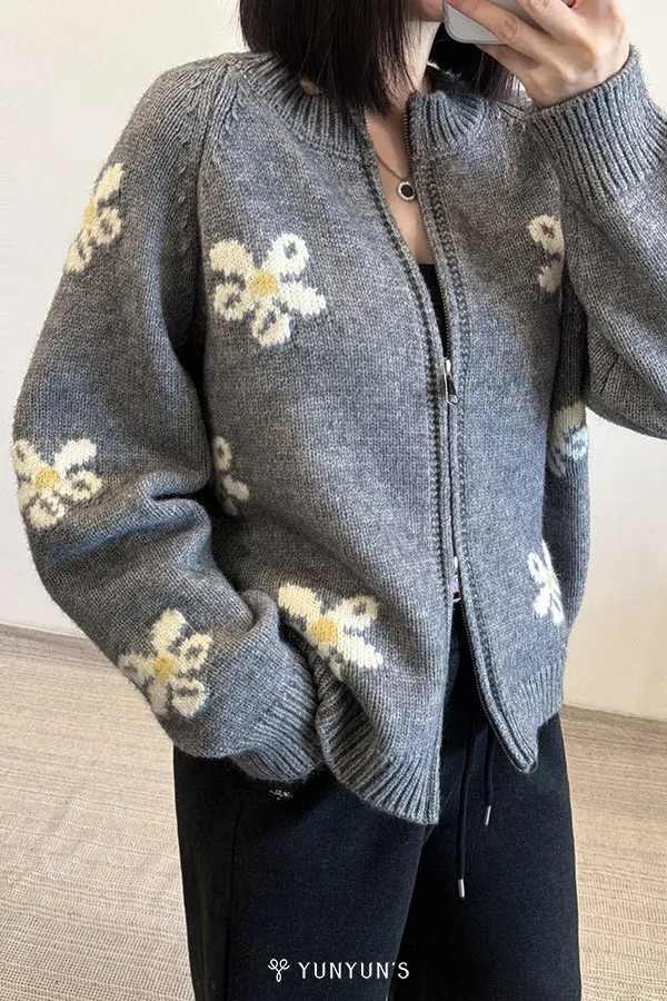・雙拉鍊好拉、正面&袖子有花花,背面是素面、開春也很實穿的單品