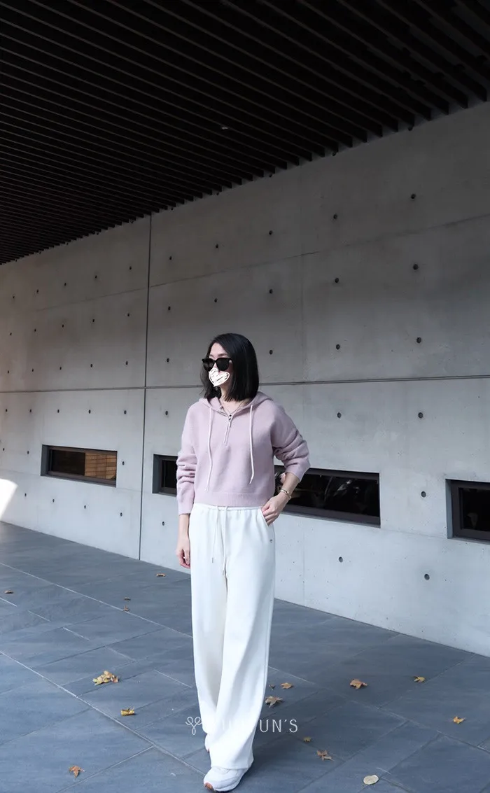 ・連帽、半拉鍊樣式,穿起來很俐落,不是貼身的,裡面要加打底也可以