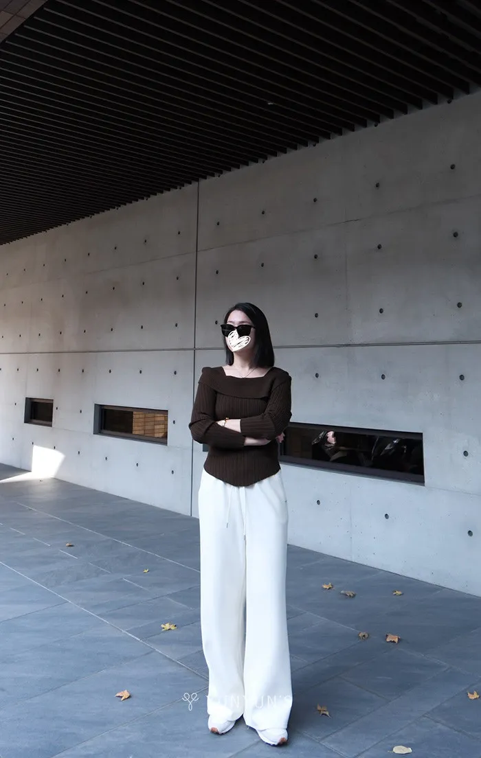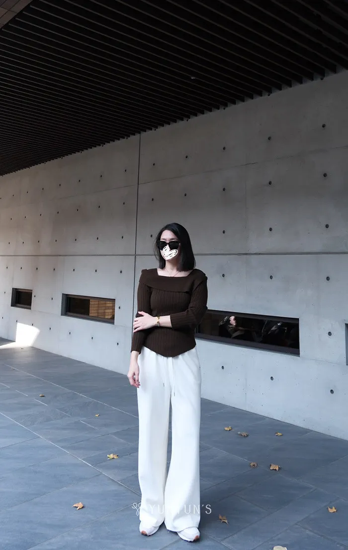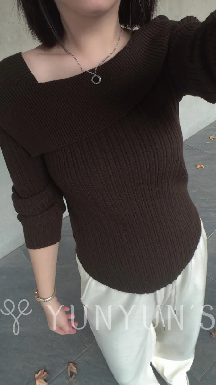(咖)不怕掉的一字領針織衫
