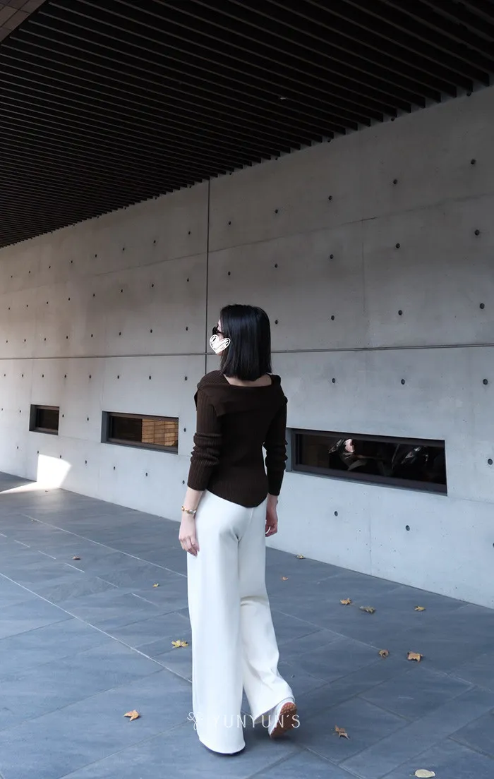 ・下擺穿起來有弧度感、很特別的一字領,有做小肩膀所以不怕會掉,素面單品的小小變化
