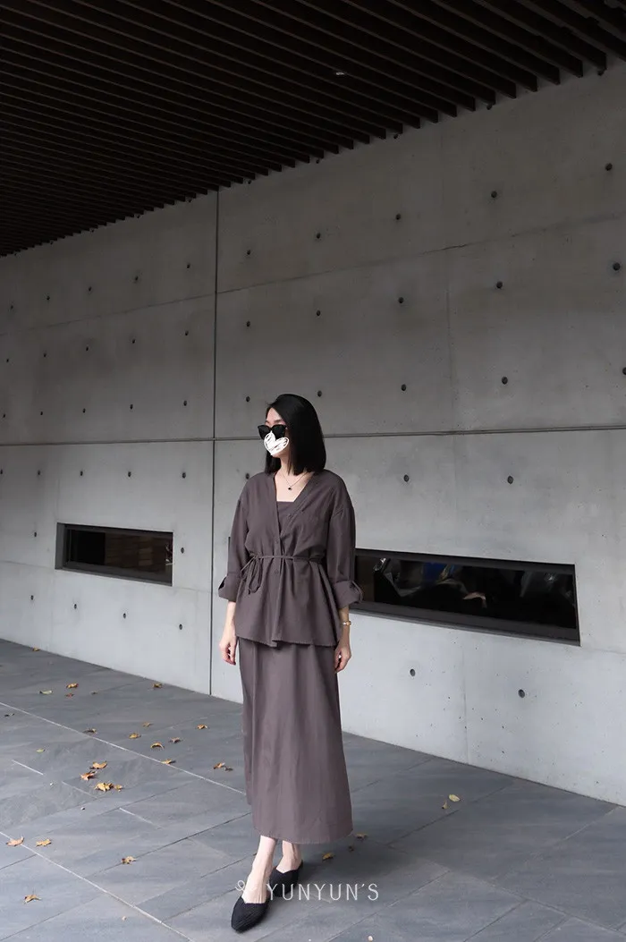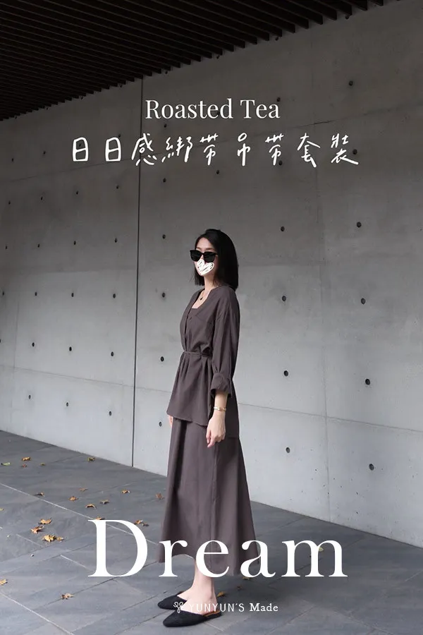 炭焙茶|YUN日日感綁帶吊帶洋套裝