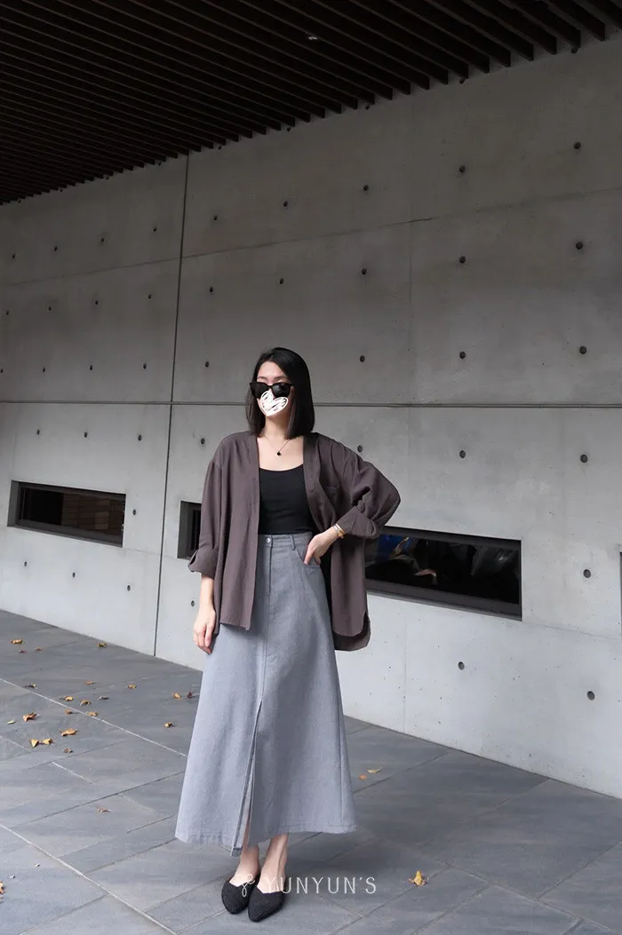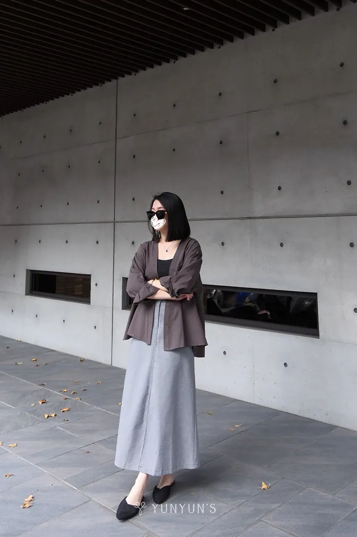 ・顏色/尺寸:炭培茶.灰杏/F (襯衫+洋裝,成套販售)