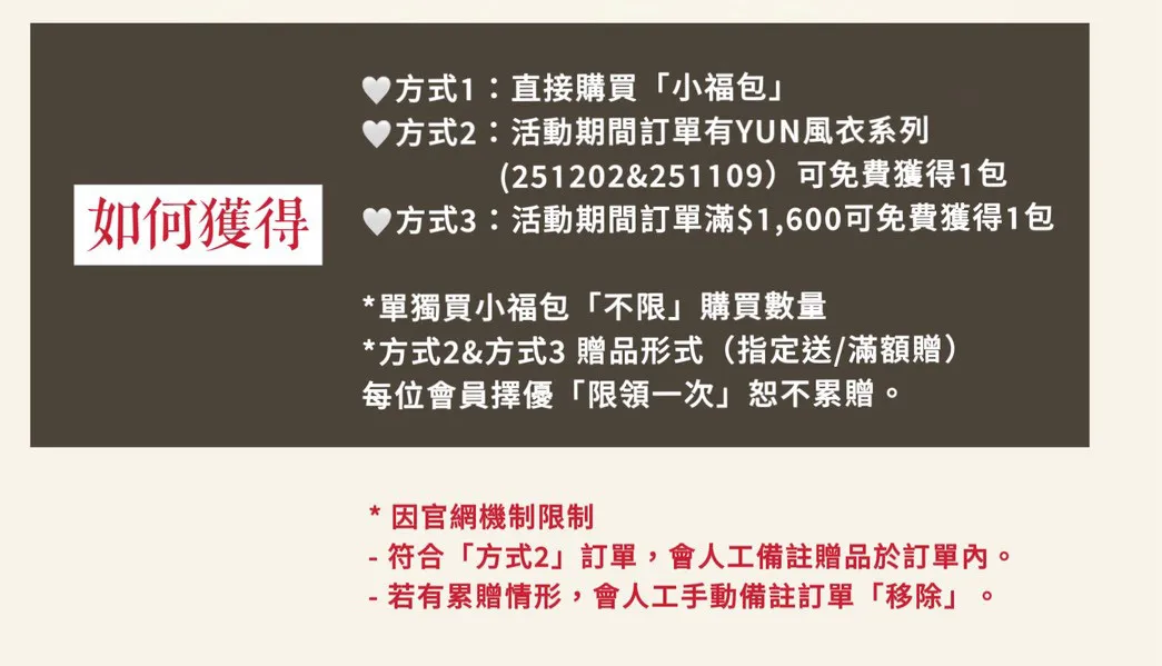 小福包屬於優惠活動性質無退換