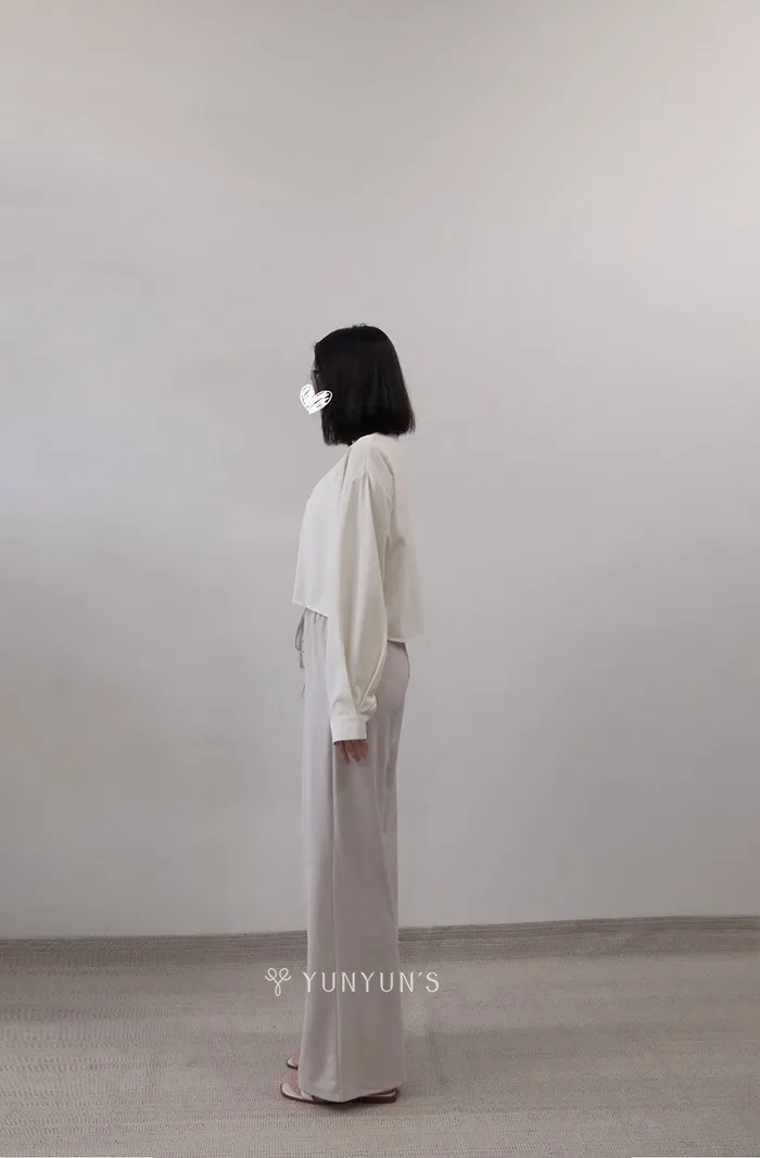 ・腰圍全鬆緊、兩側有口袋、正面有抽繩(腰帶有車固定縣讓抽繩不容易翻轉)、直筒寬褲