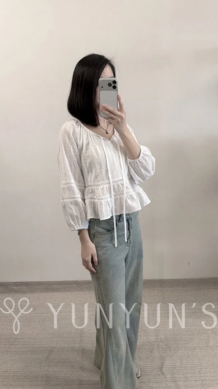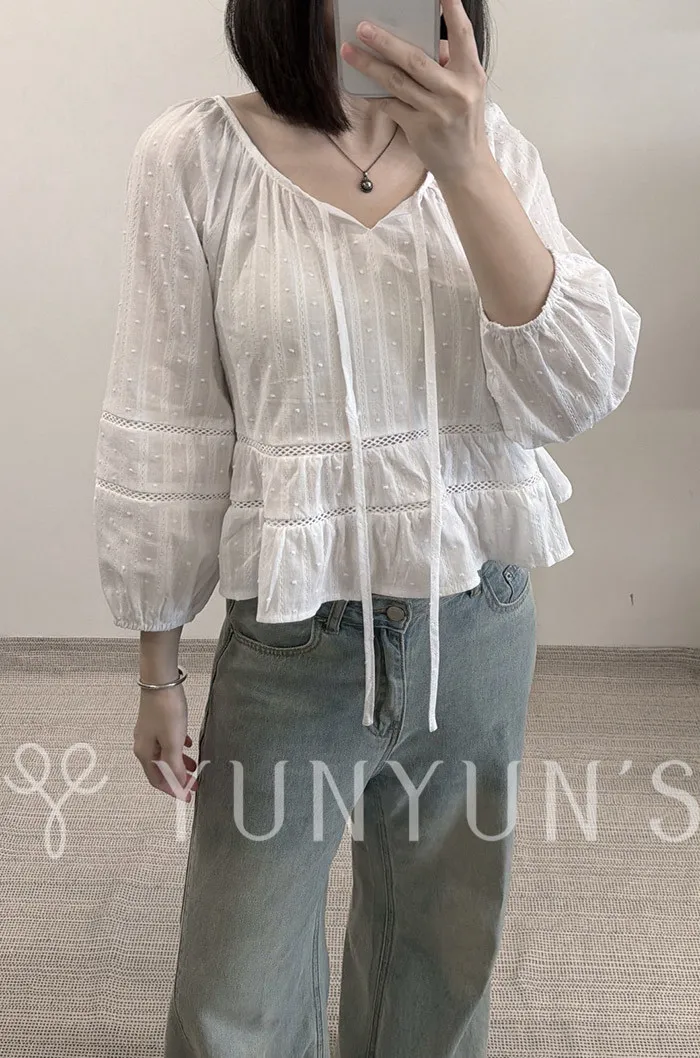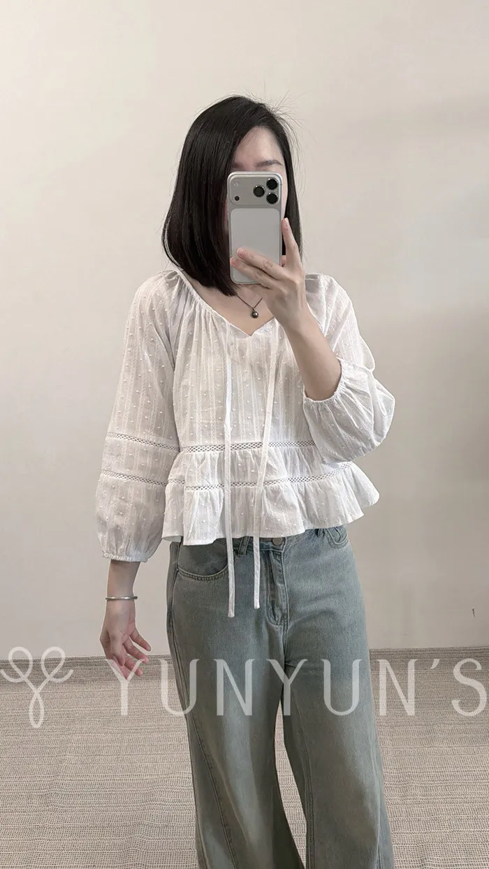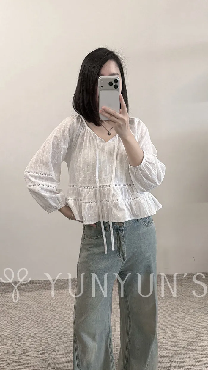白|YUN純棉特殊紋理氣質七分袖上衣