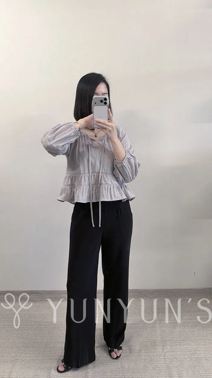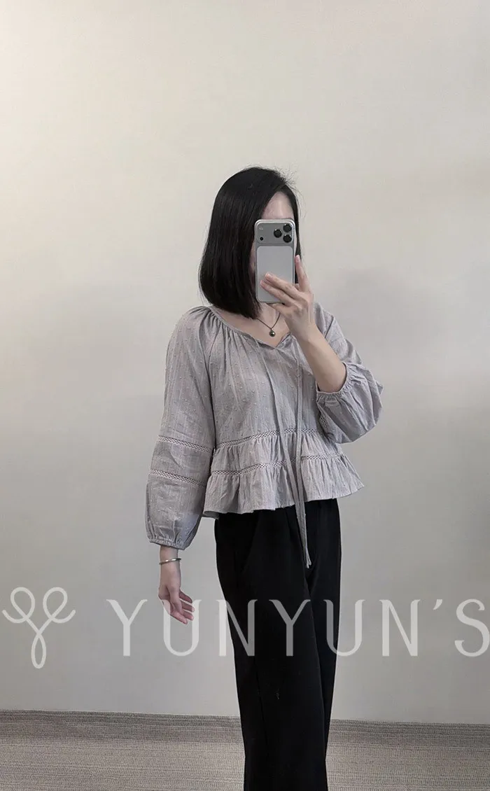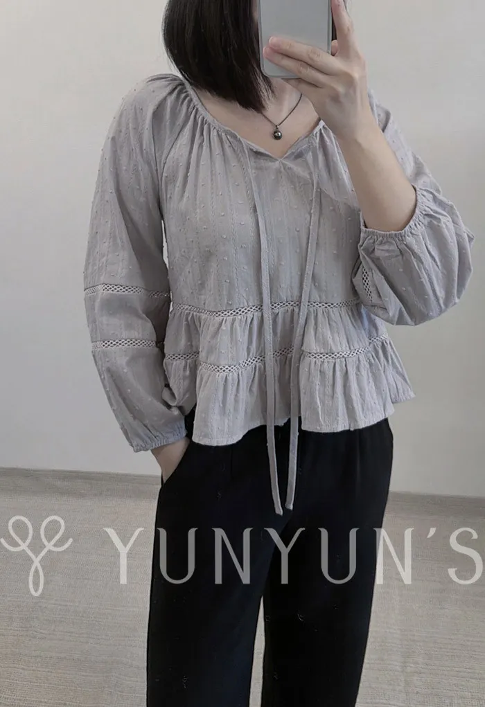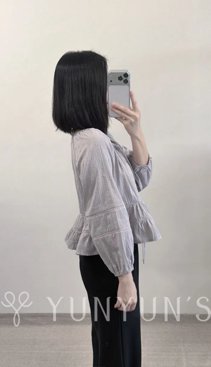 灰|YUN純棉特殊紋理氣質七分袖上衣