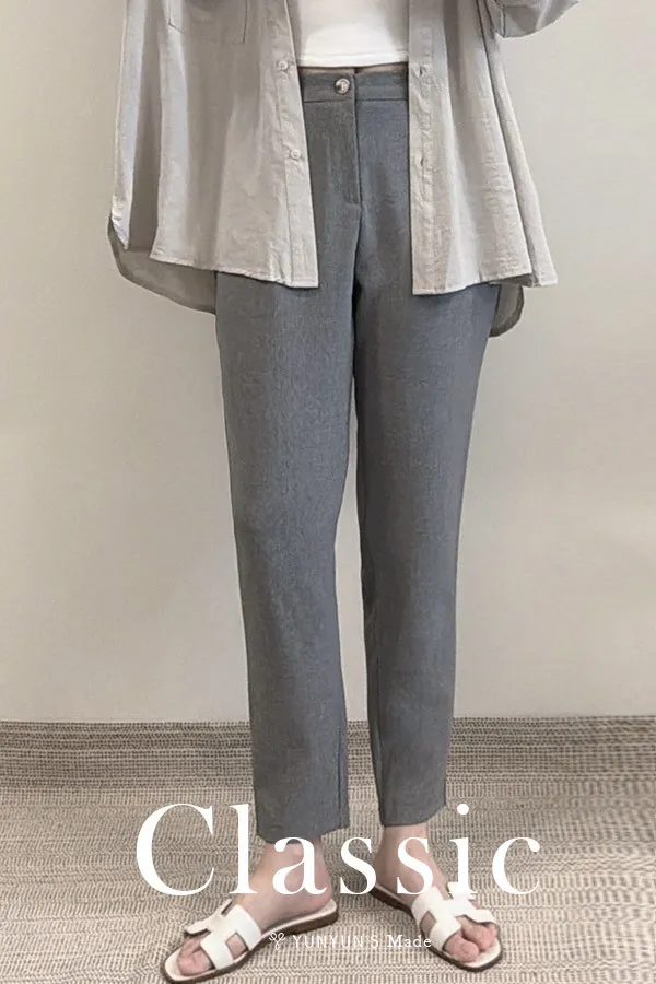 灰|YUN可反摺舒適九分西褲