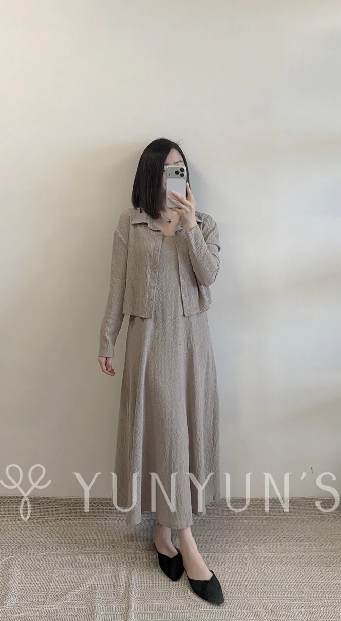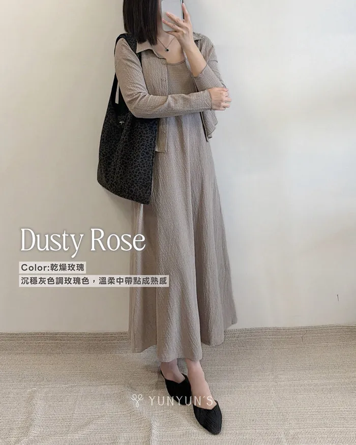 乾燥玫瑰|YUN抗皺氣質襯衫吊帶洋套裝(成套販售)