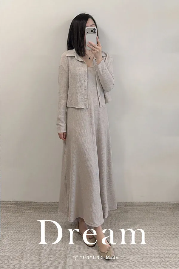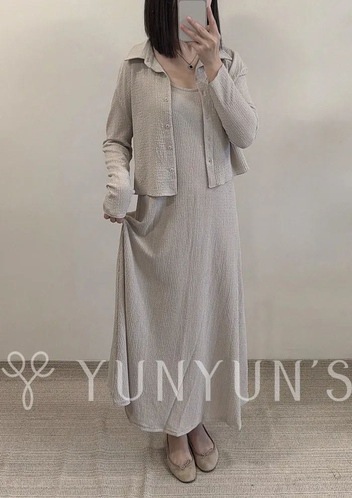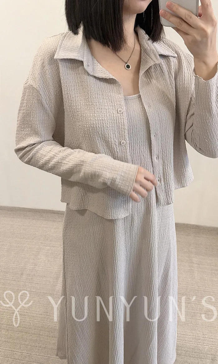 溫柔霧粉|YUN抗皺氣質襯衫吊帶洋套裝(成套販售)