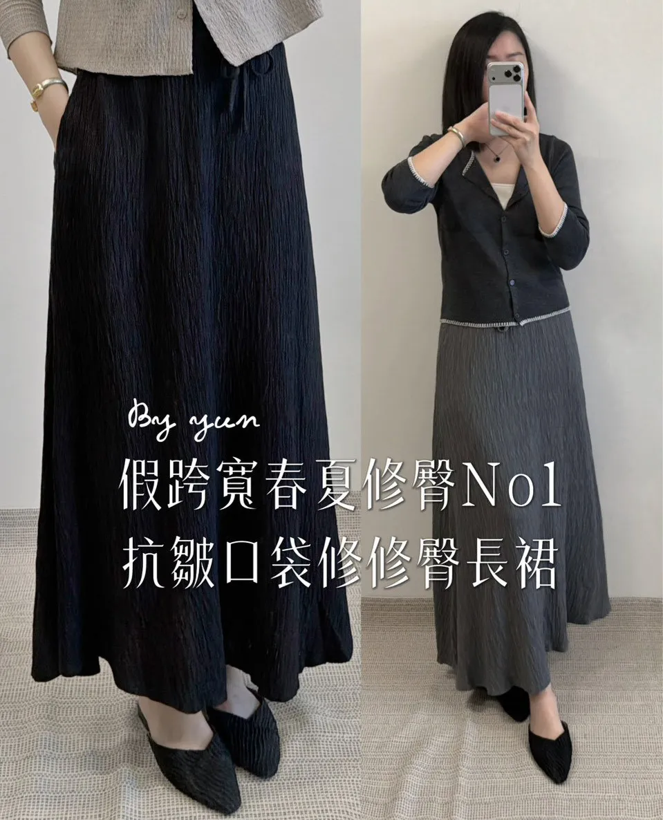 ・兩側有口袋、散狀長裙不貼臀腿,yun實穿不用吸小腹很方便
