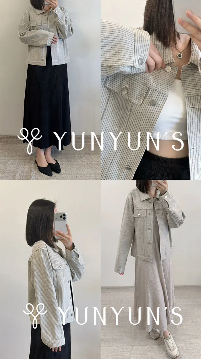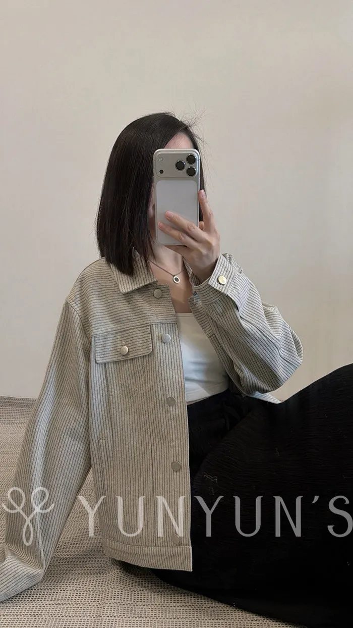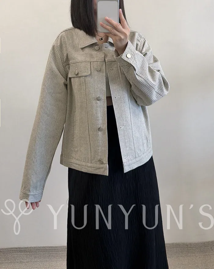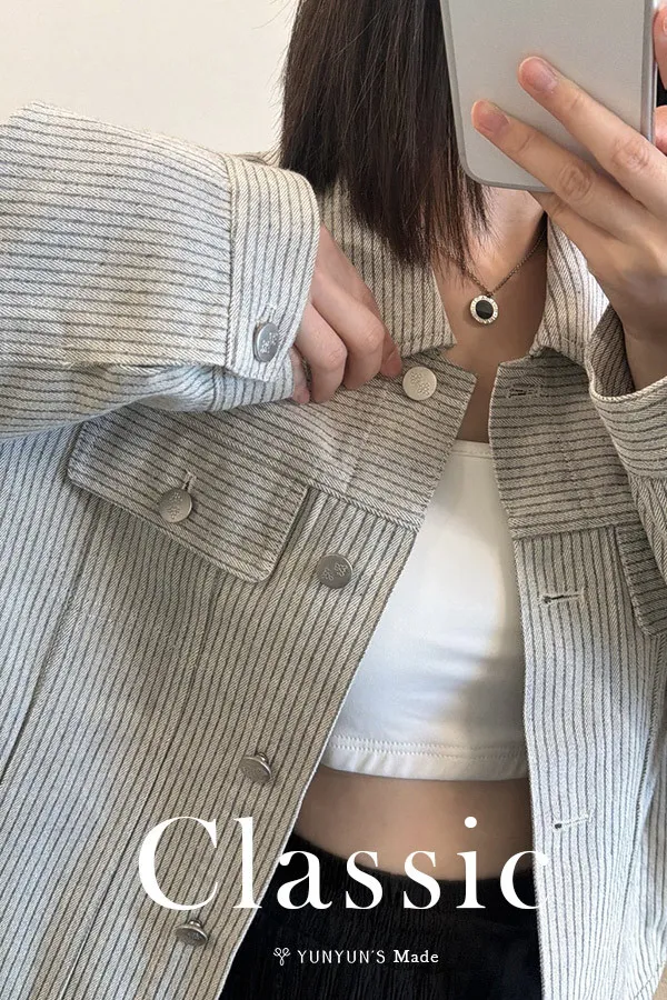 YUN小花釦細條不易皺輕薄牛仔外套