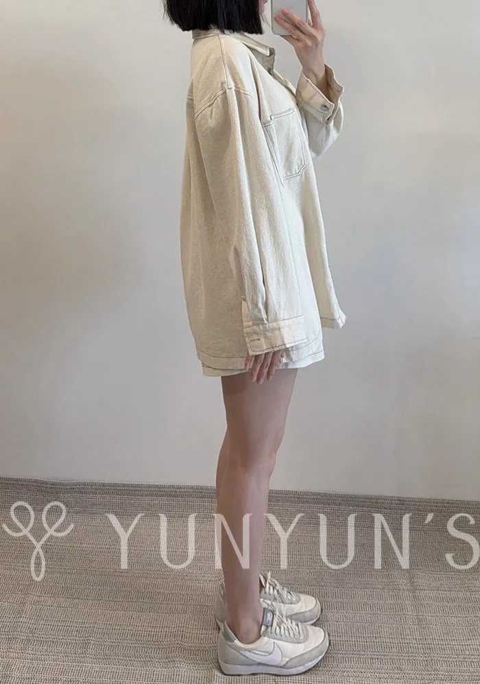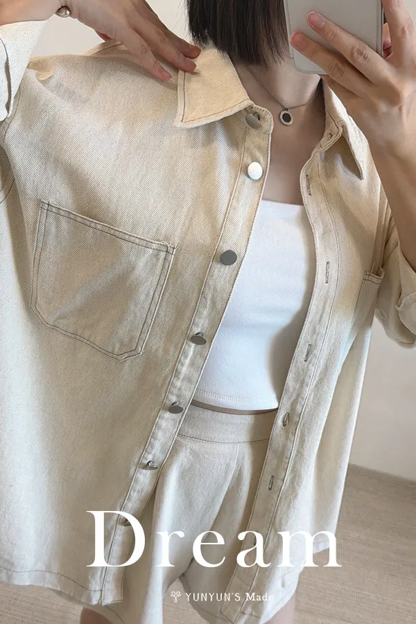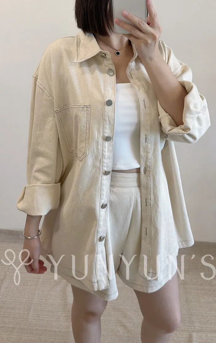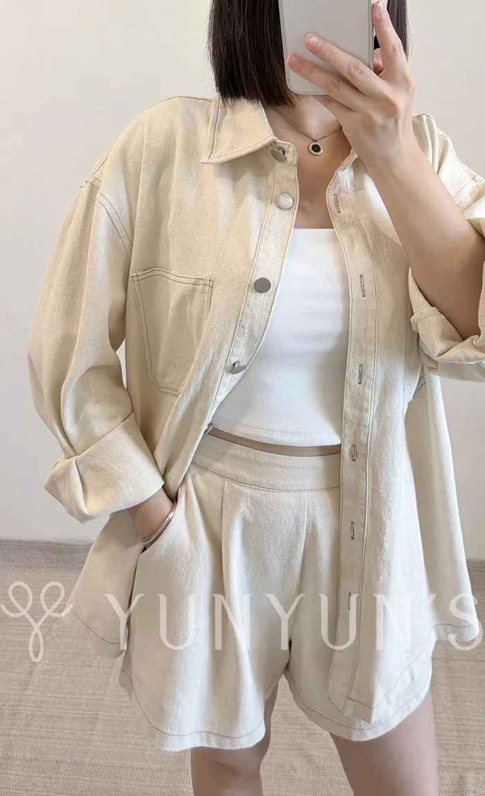 燕麥|YUN挺版俐落牛仔襯衫+短褲套裝(成套販售)