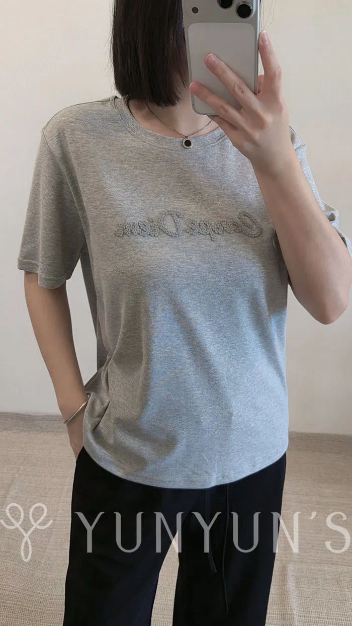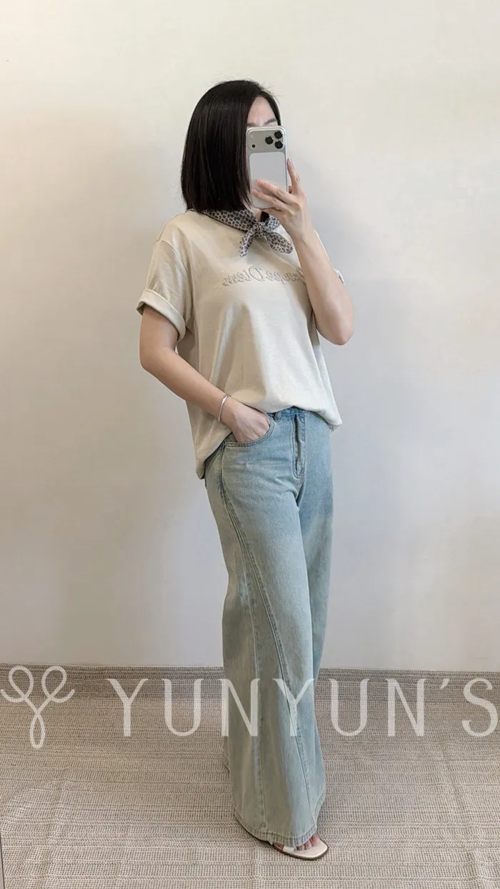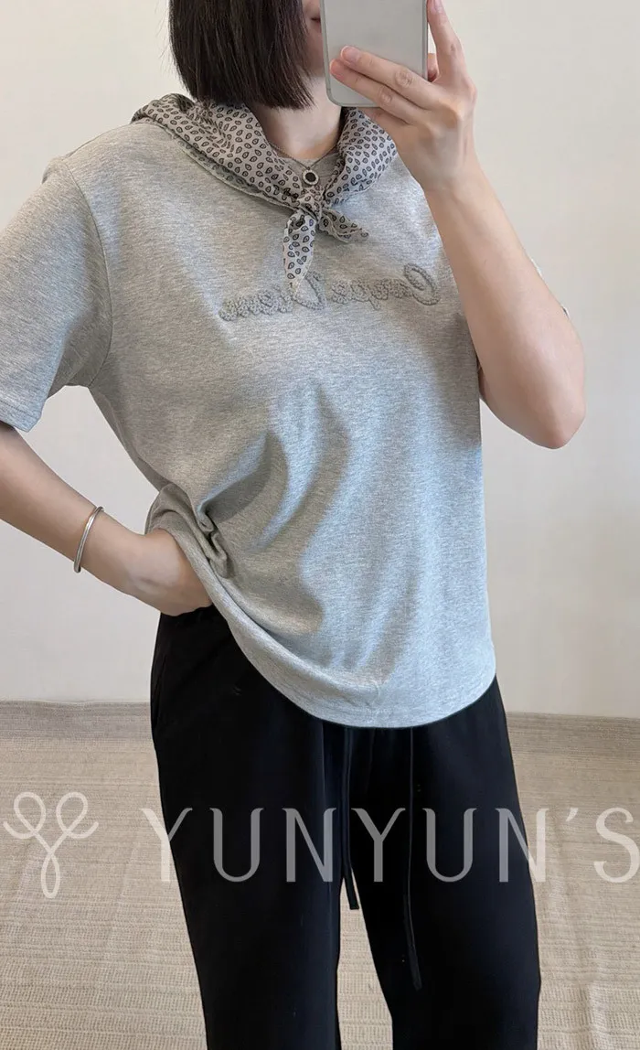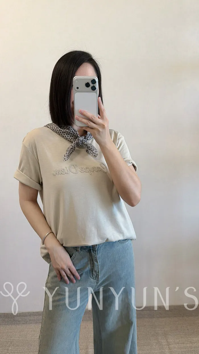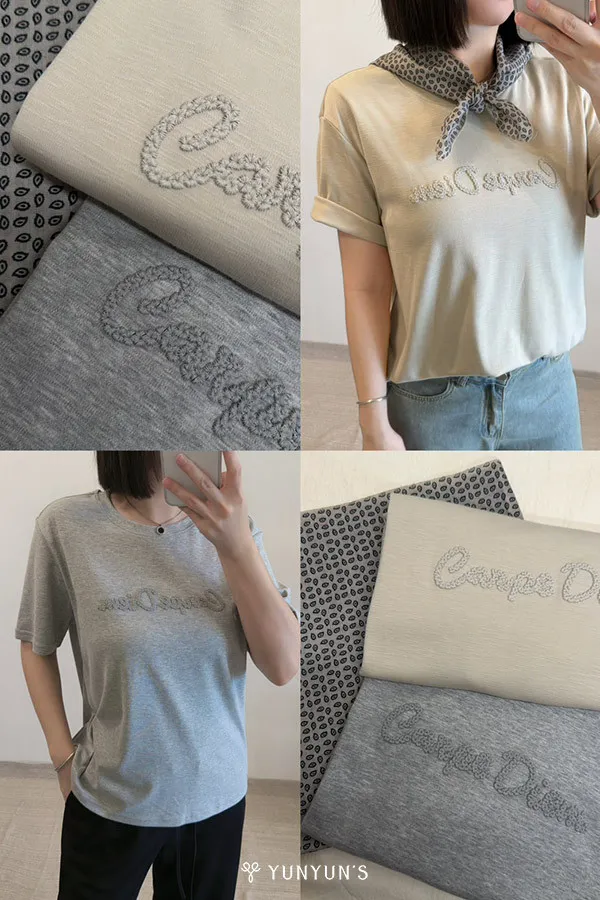 (2色)質感細節蛋糕壓花感文字TEE/附披巾