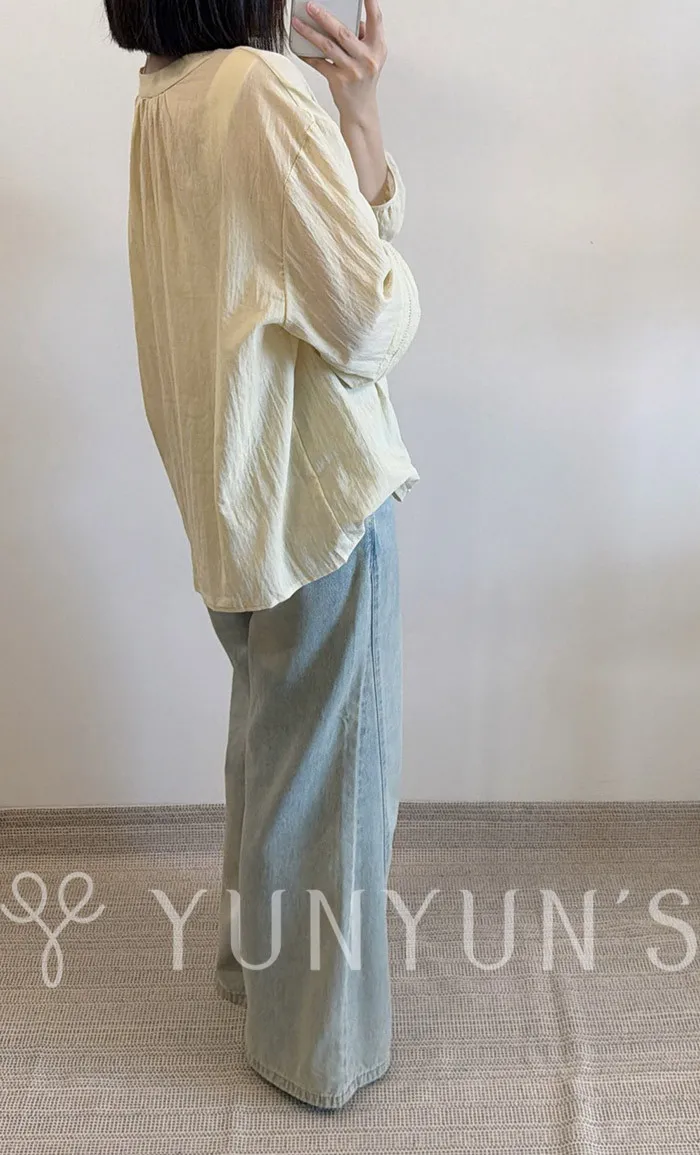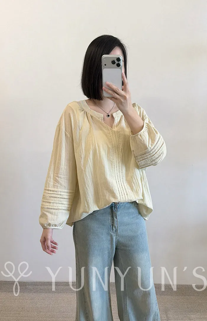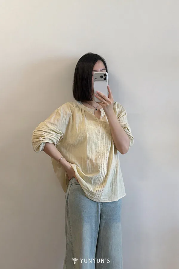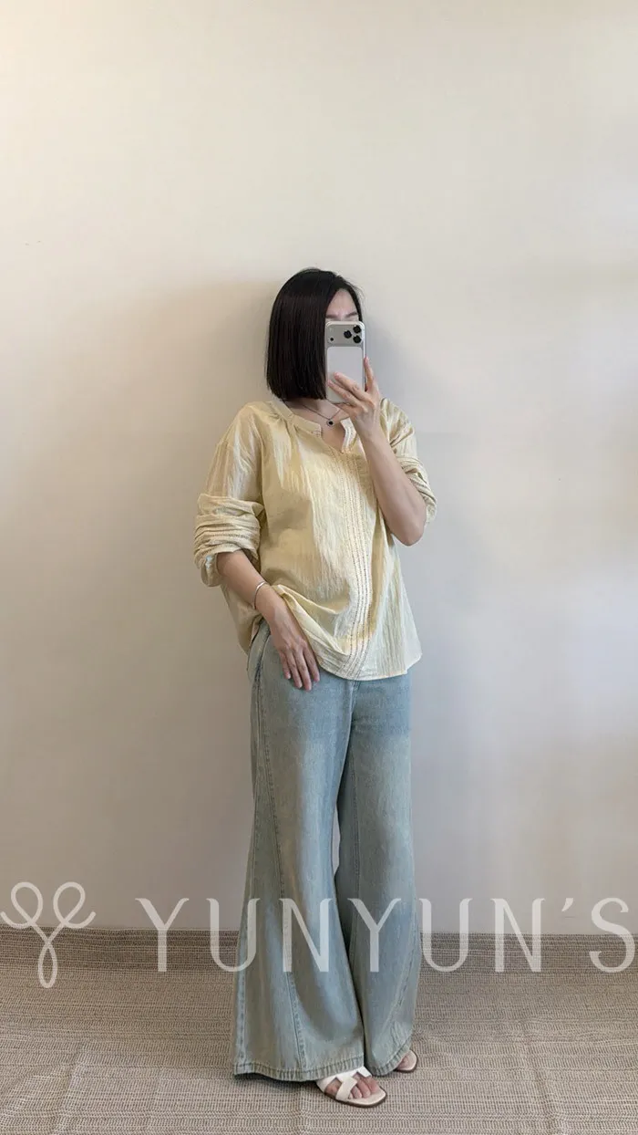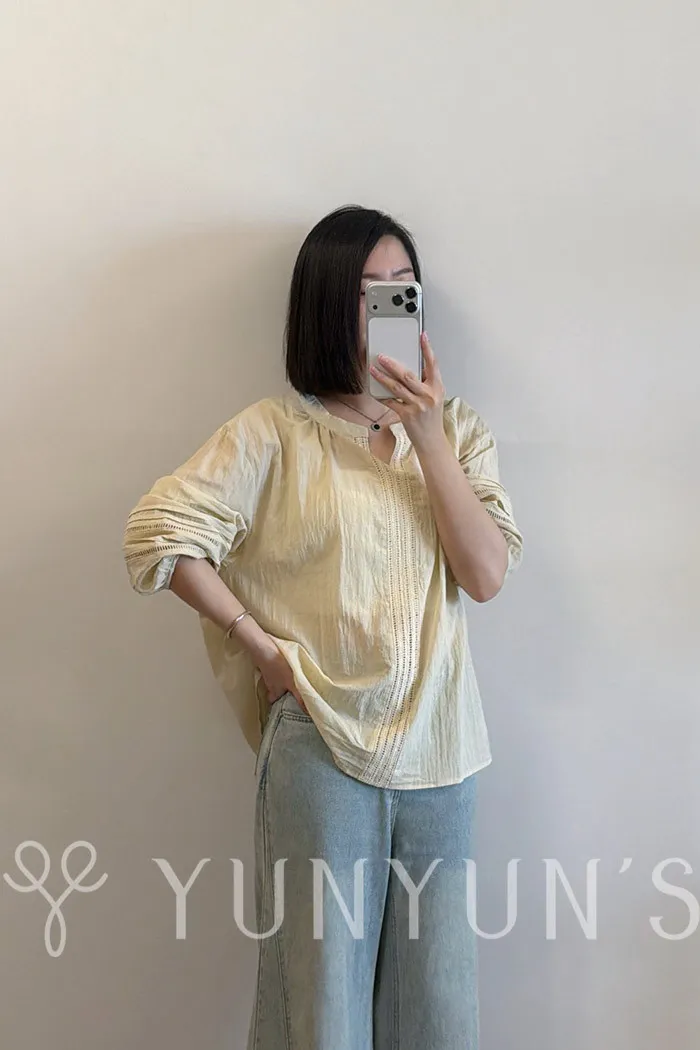 (鵝黃)細節滿滿舒適棉質小V領衫