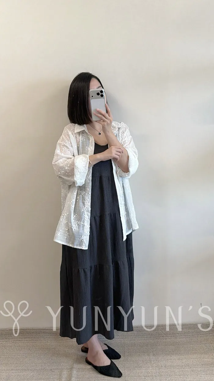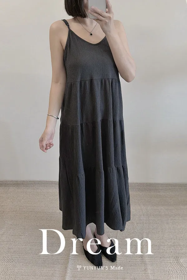 灰|YUN可調肩帶抗皺修修臀吊帶洋