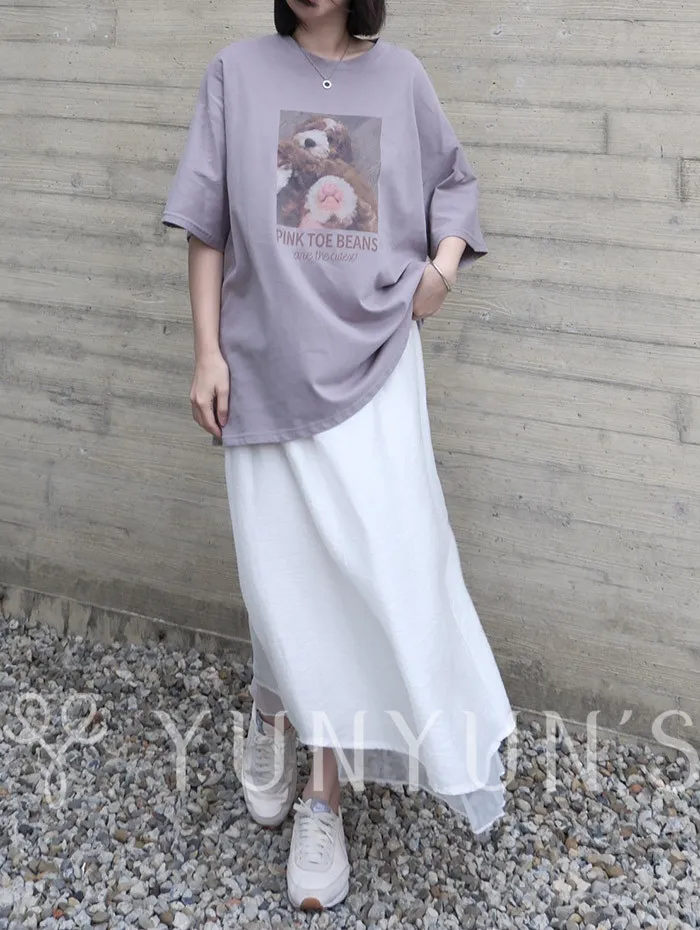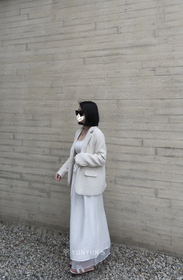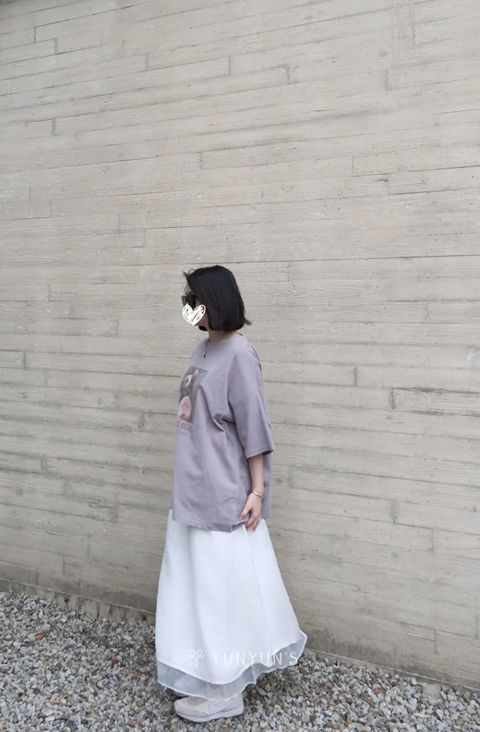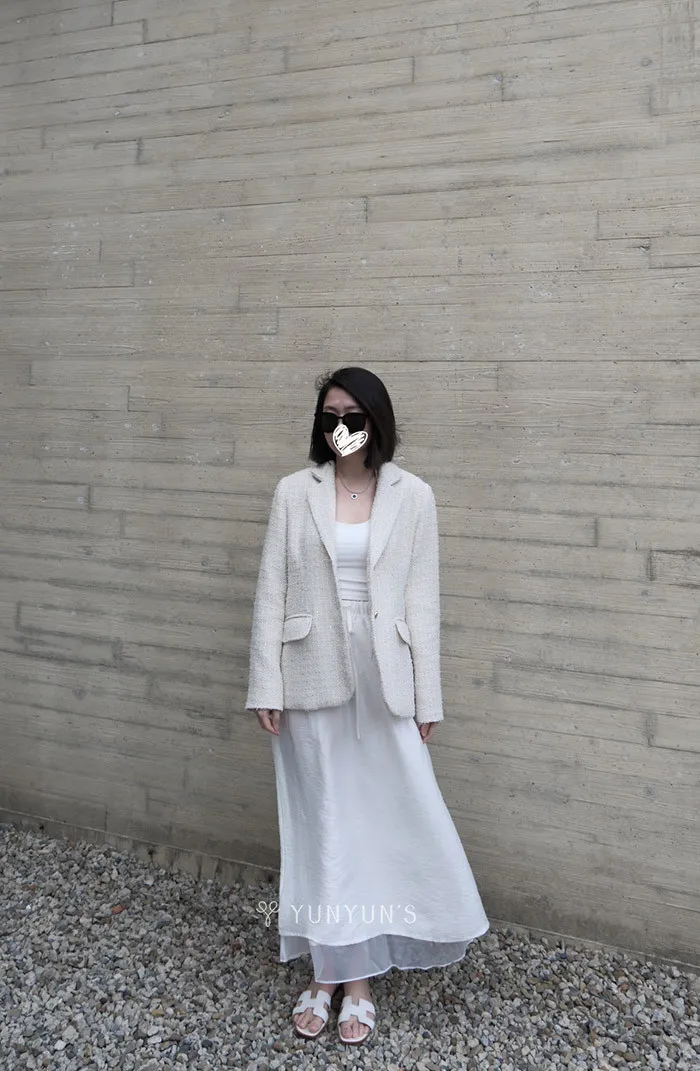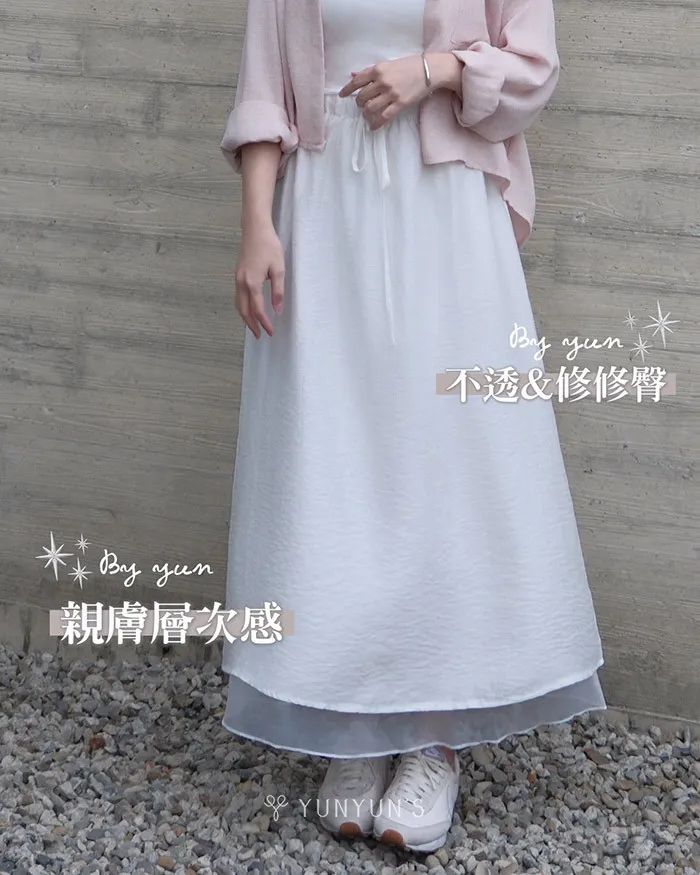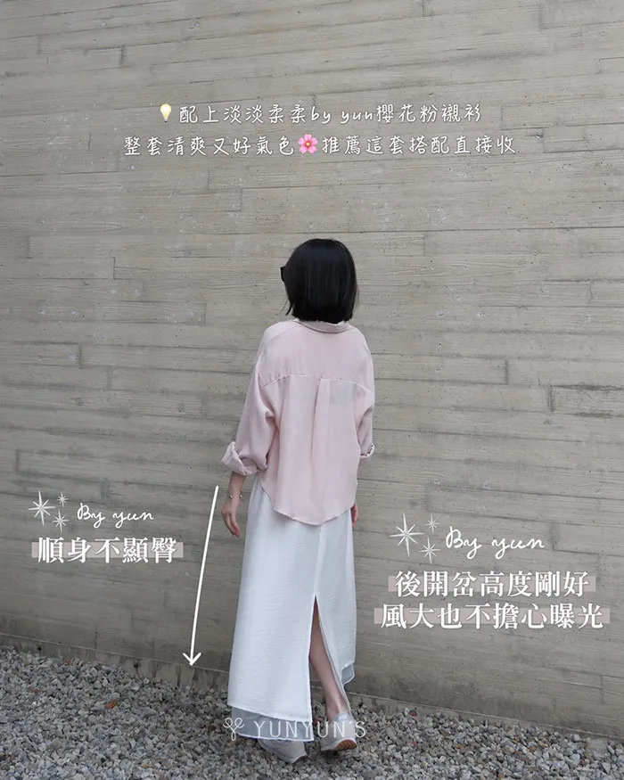 白|YUN親膚層次感後開岔長裙