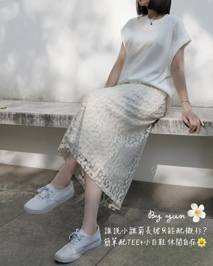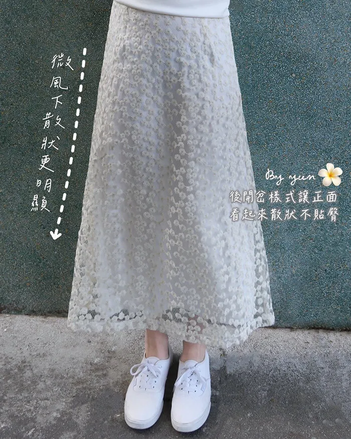 ・小雛菊是立體的(不是印花布).無口袋.腰圍後鬆緊+側邊隱藏式拉鍊.正面腰頭乾淨俐落