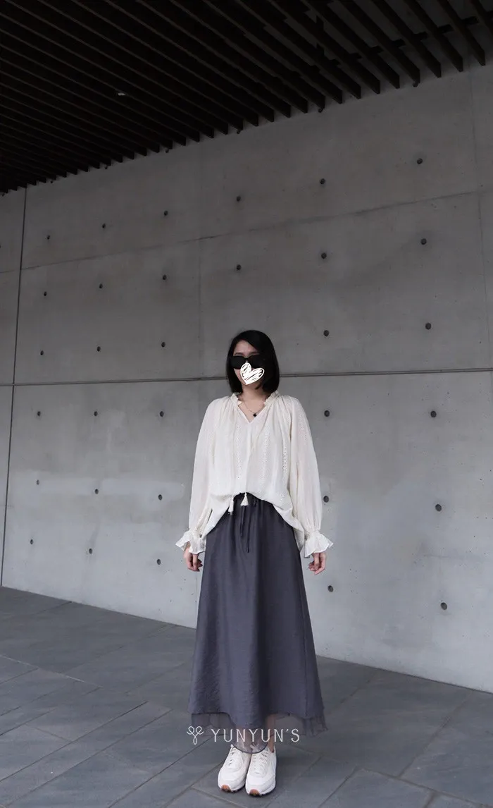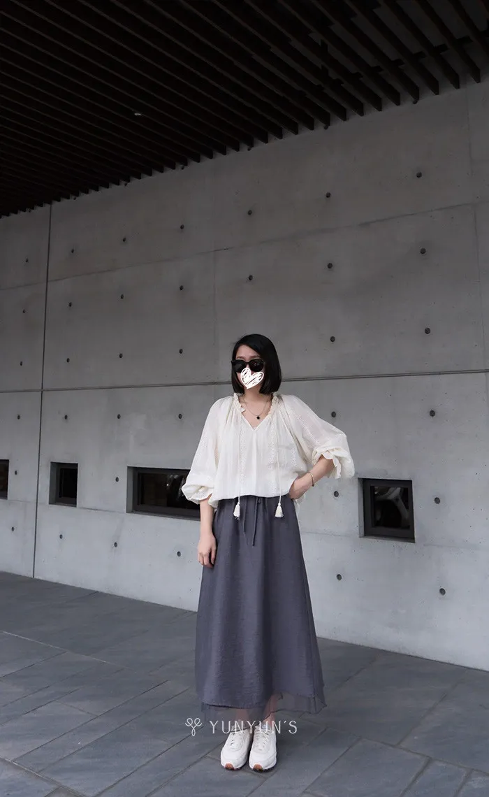 ・版型寬鬆涼爽、材質微透、杏色淺淺的在光下會更淡
