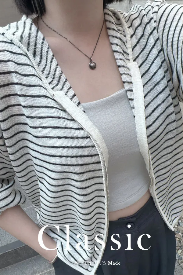 條紋|YUN夏季不刺涼爽防曬連帽外套