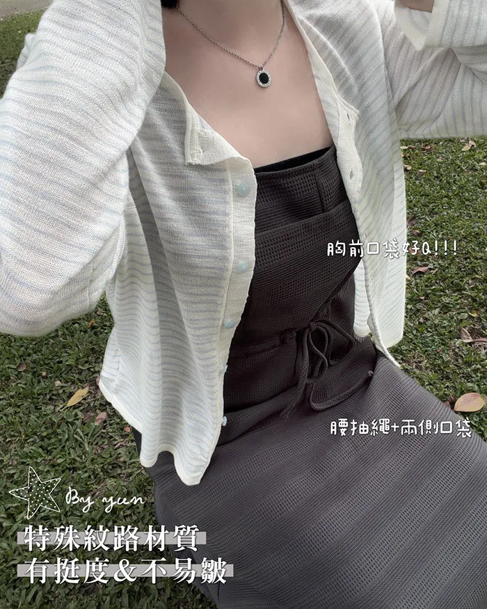 深灰|YUN抗皺新材質 抽繩口袋吊帶洋