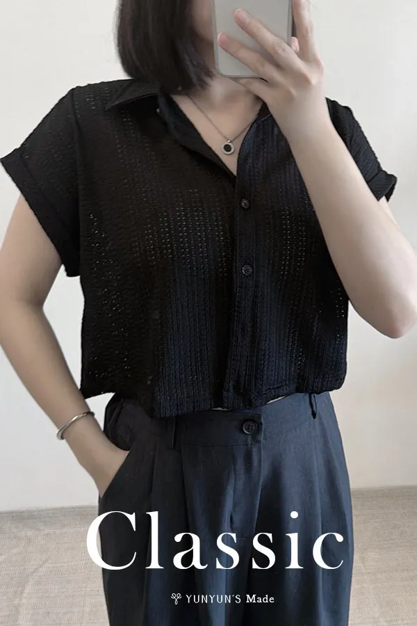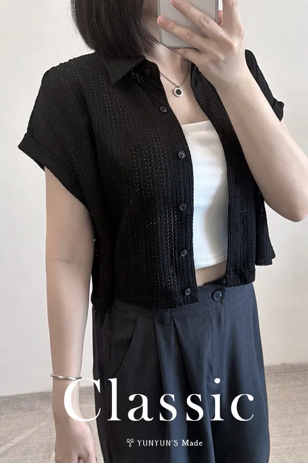 ・抗皺材質、透氣壓花不會透(涼爽舒適)、整排扣子可打開當小外套(或單穿當上衣)