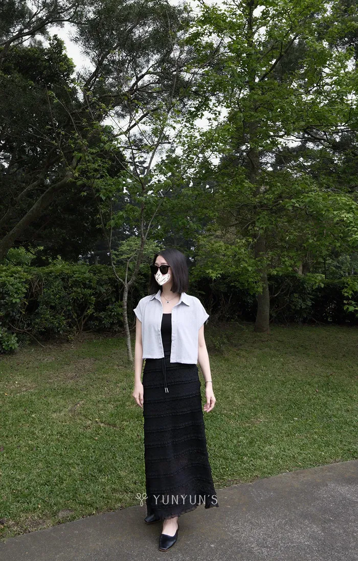 ・抗皺材質、透氣壓花不會透(涼爽舒適)、整排扣子可打開當小外套(或單穿當上衣)