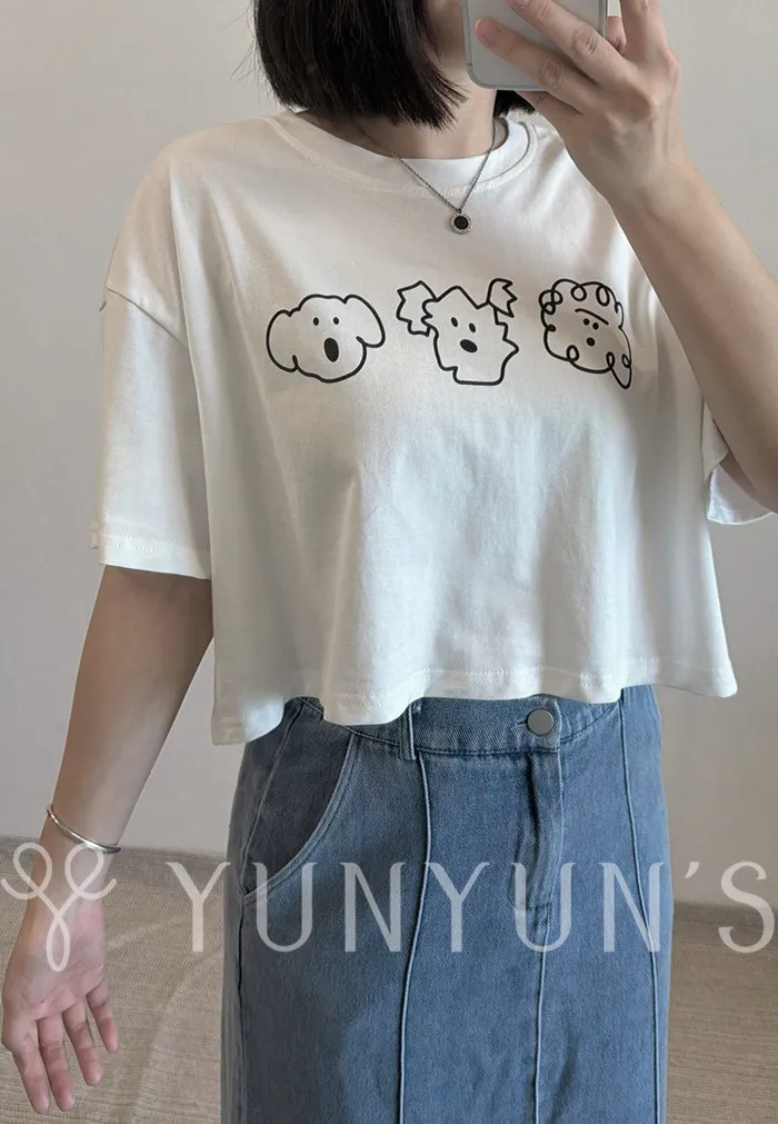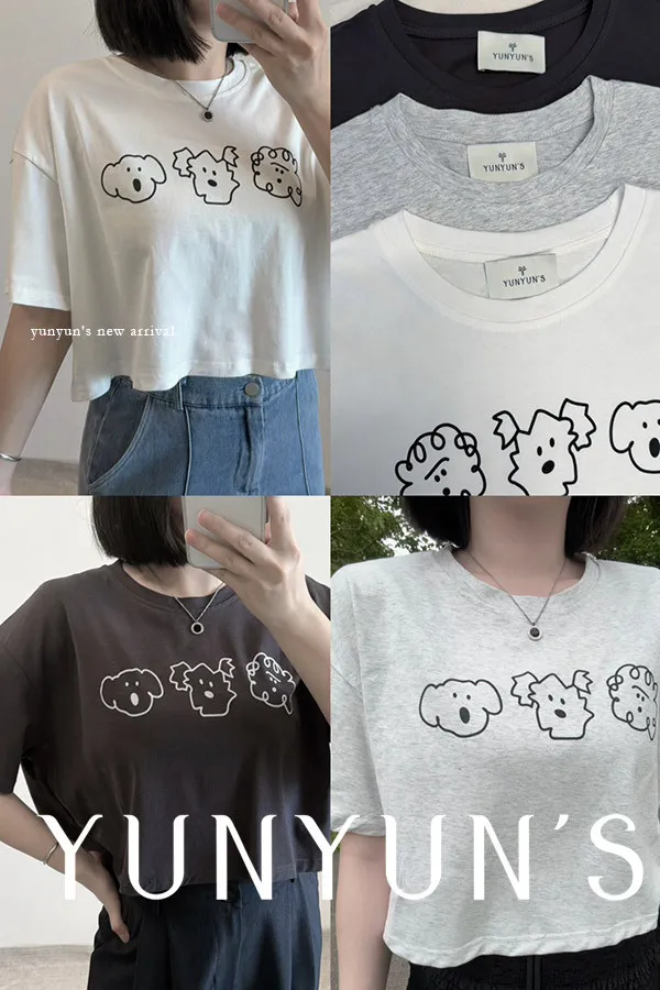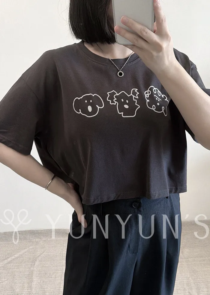 (3色)寬鬆微短Q版狗狗TEE