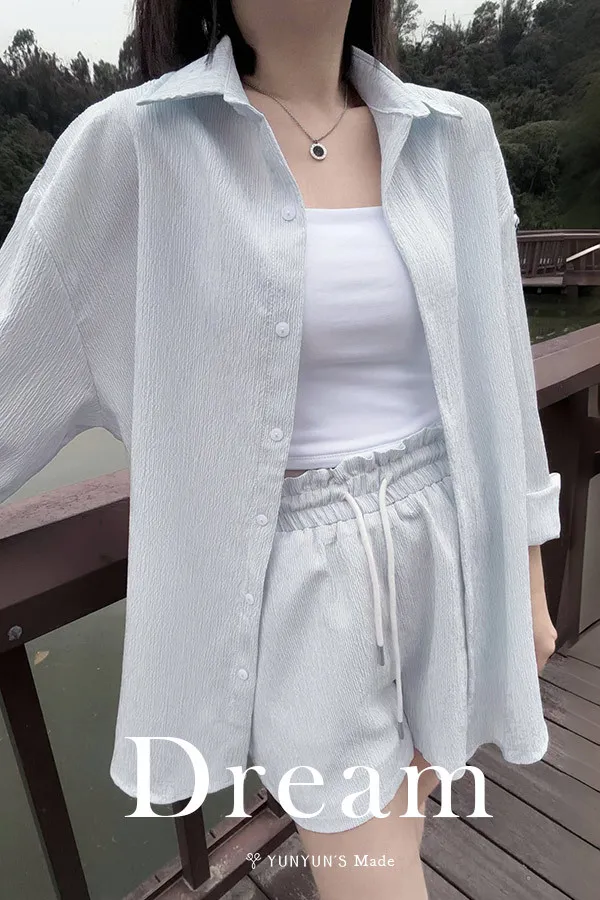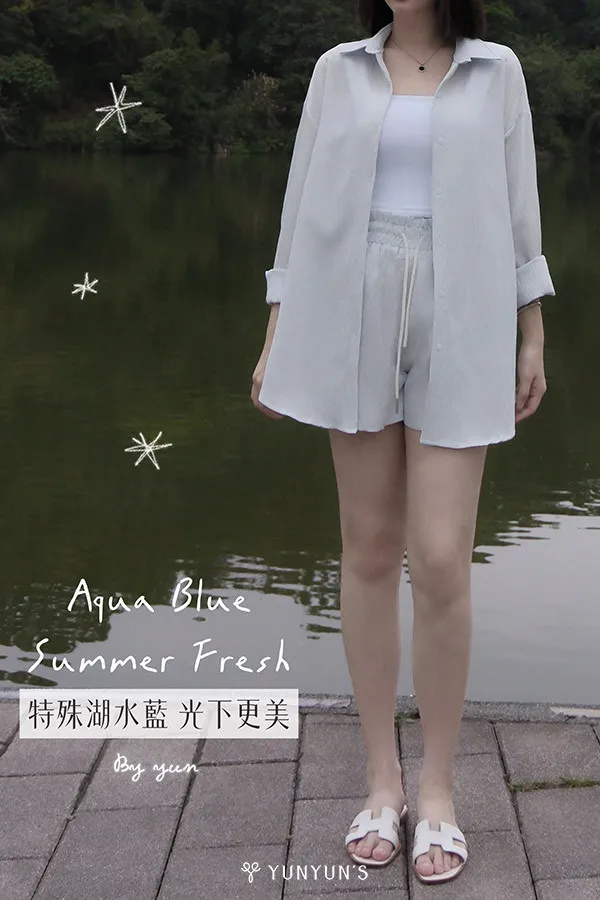 湖水藍|YUN抗皺夏季襯衫+短褲套裝(成套販售)