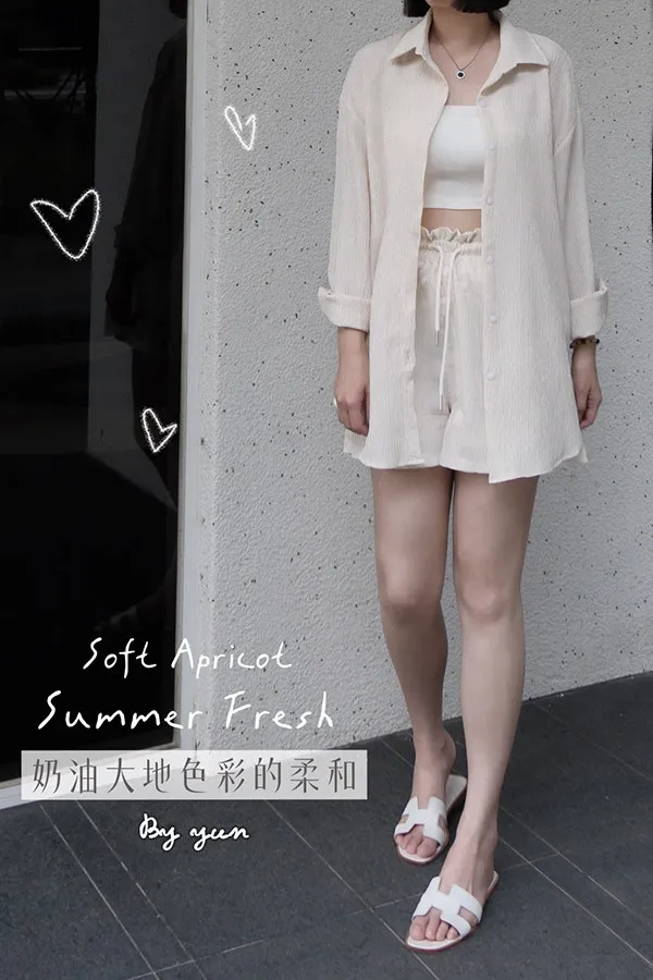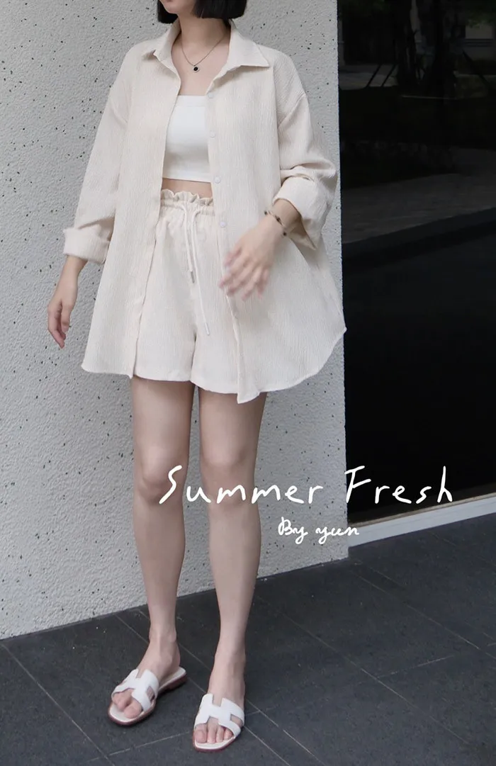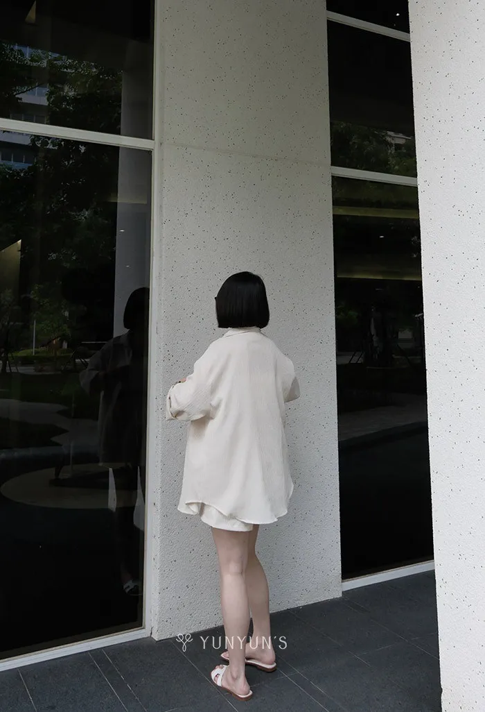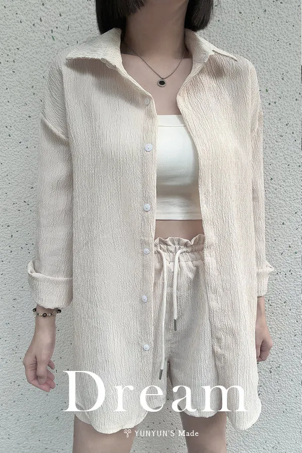 杏|YUN抗皺夏季襯衫+短褲套裝(成套販售)