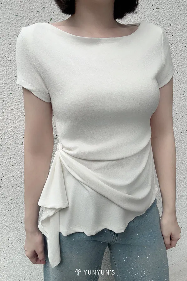 ・側邊抓皺是最漂亮的地方,修飾小腹。白色我配的是無痕BRATOP