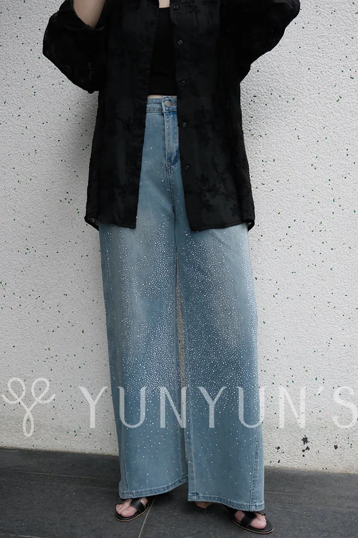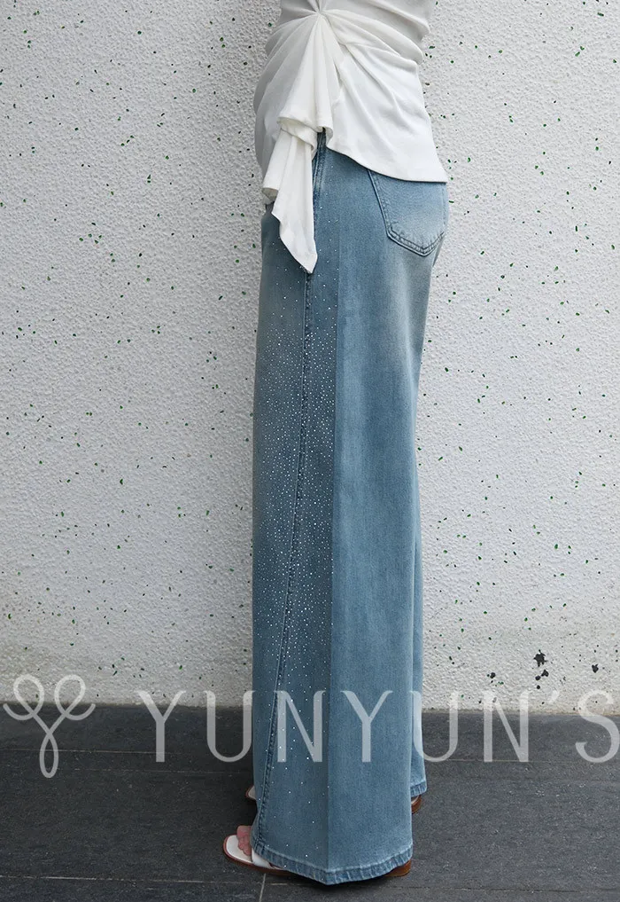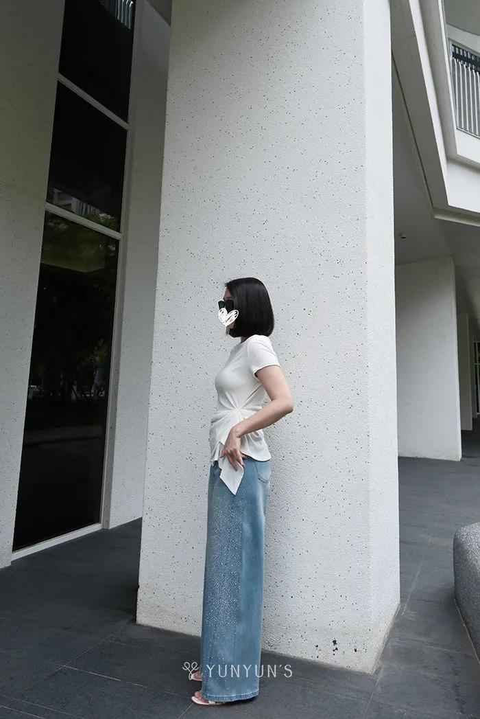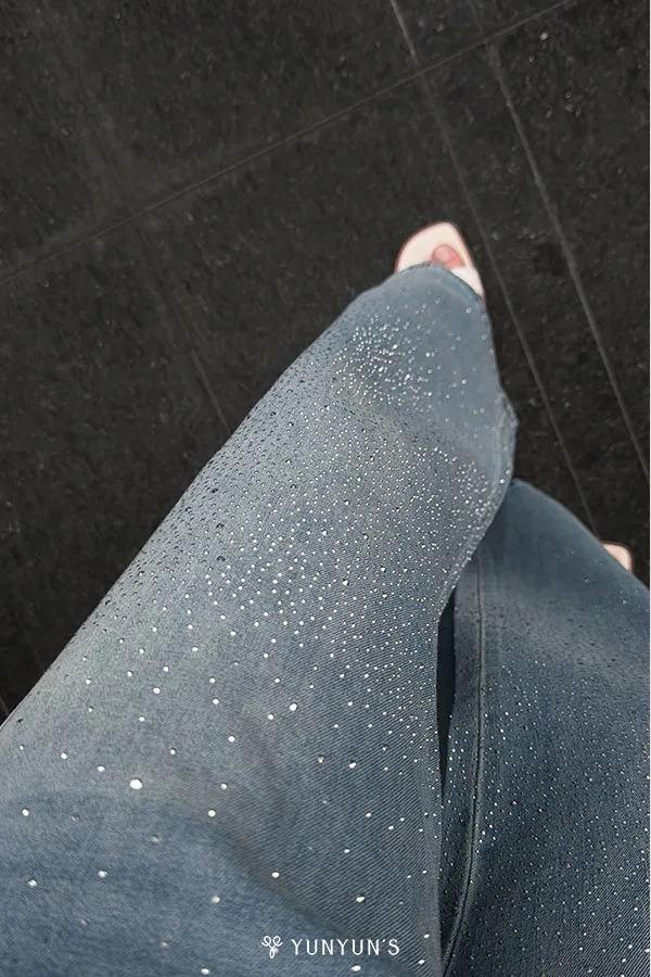 ・寬褲樣式、正面貼鑽背面素面,yun身形下面實穿是【m】合身舒適