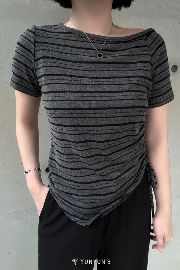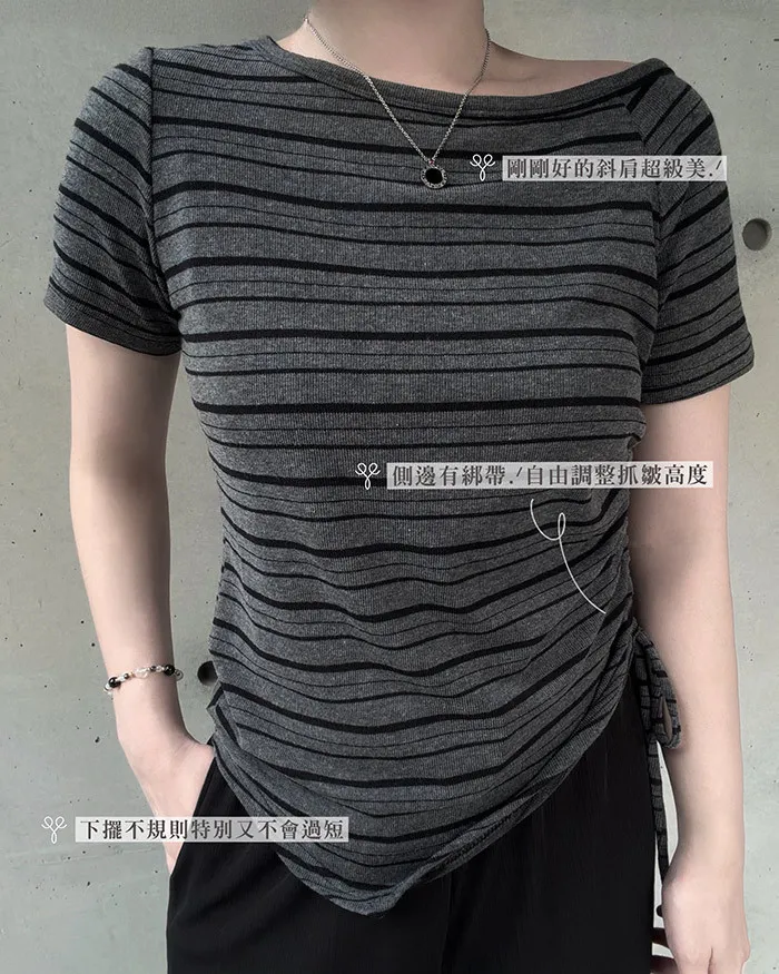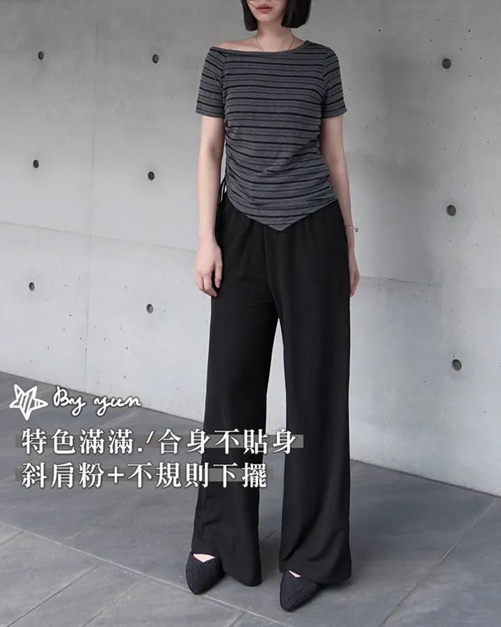 ・下擺不規則很漂亮,側邊抽繩可自由調整抓皺高度、漂亮斜肩不會過於露