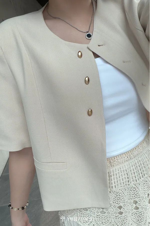 ・口袋是裝飾、軟墊肩不可拆不會顯胖、扣子非常特別&漂亮
