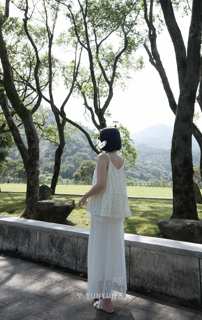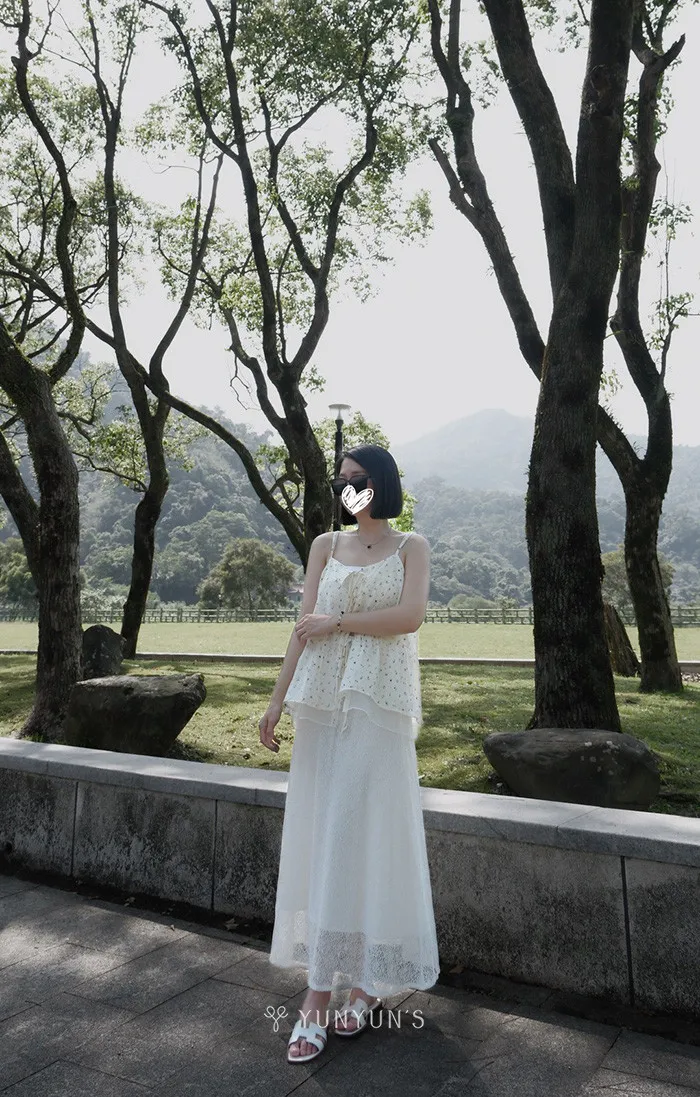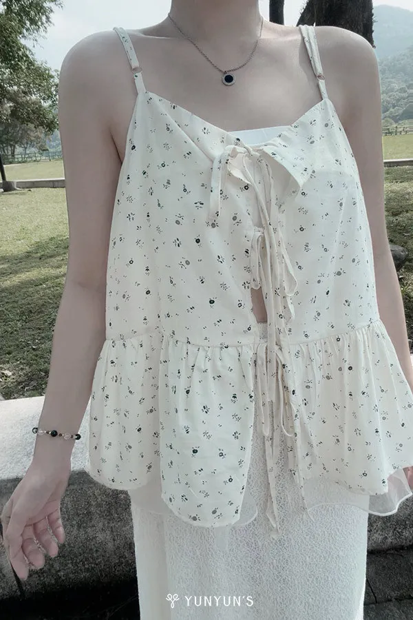 (白)雙面穿層次感綁帶吊帶上衣
