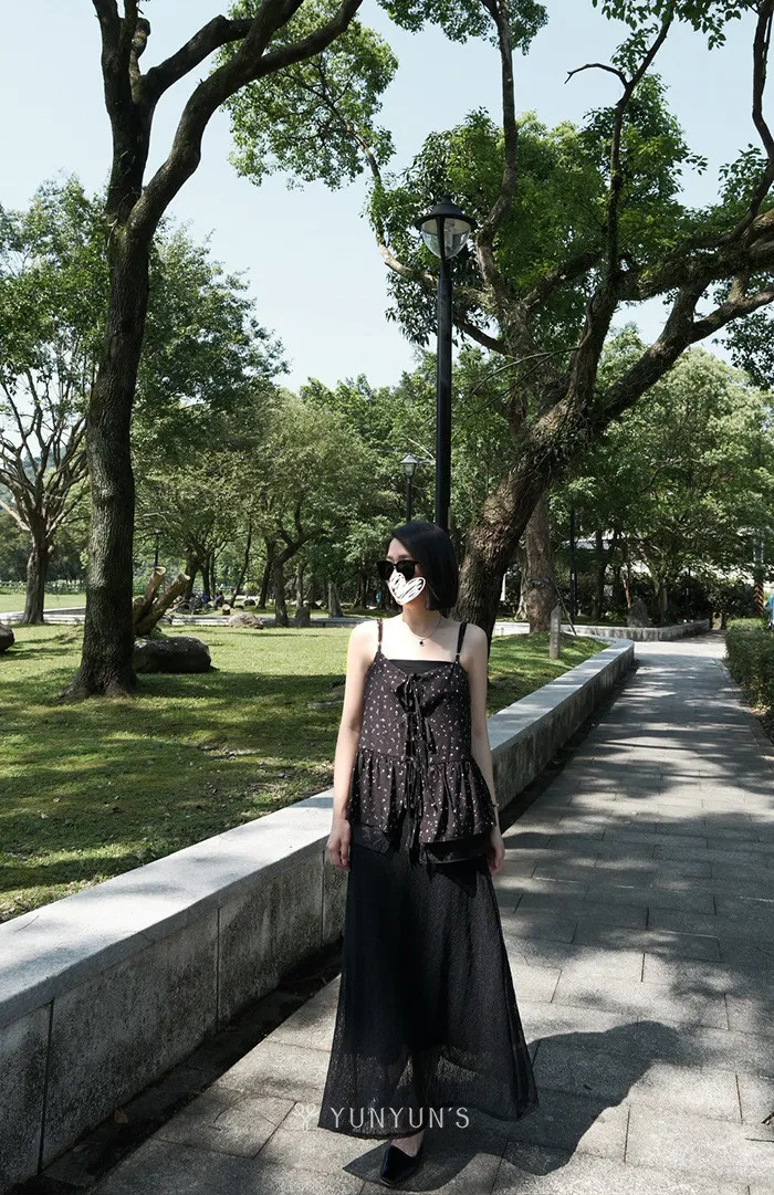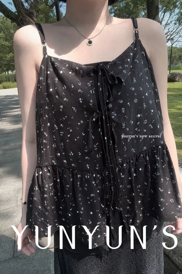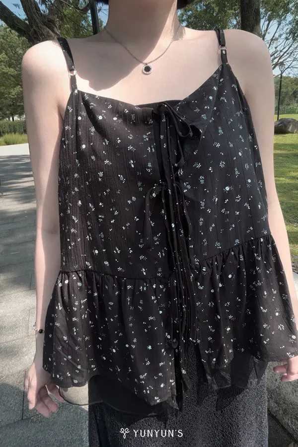 ・肩帶可調整,正面三個蝴蝶結綁帶(自由調整),雙面皆可穿,碎花很漂亮,下擺雙層的層次感.ᐟ
